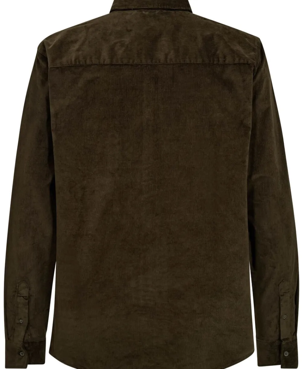Skjorte fra Magasin du Nord Collection i den blødeste fløjlskvalitet af 99% økologisk bomuld med GOTS-certificering. Skjorten er enkel i modellen med lange ærmer, knaplukning på fronten, brystlomme samt en klassisk krave. En klassisk fløjlsskjorte i den lækreste kvalitet. Global Organic Textile Standard (GOTS) certificeringen sikrer en sporbar forsyningskæde af økologisk materiale, der overholder strenge miljø- og kemikrav samt ordentlige arbejdsforhold i alle led. Økologisk materiale kommer fra landbrug, hvor man arbejder med naturen på en måde så både økosystemer og biodiversitet opretholdes. Det betyder, at der ikke benyttes giftige kemikalier, at vandforbruget begrænses og at der i højere grad anvendes regnvand i produktionen.