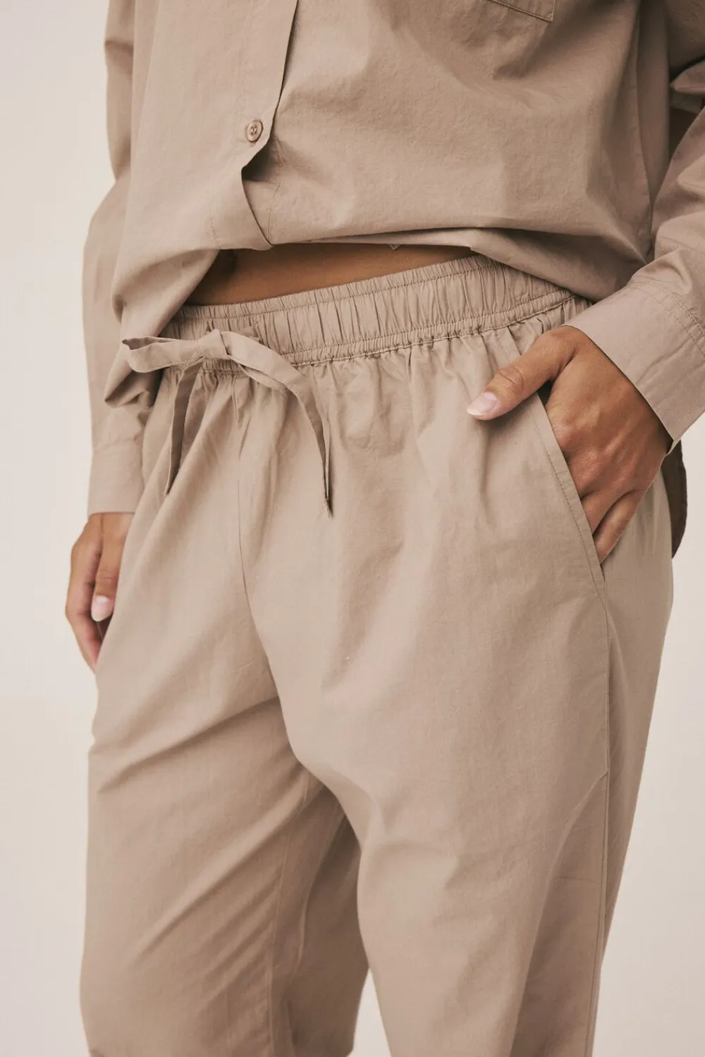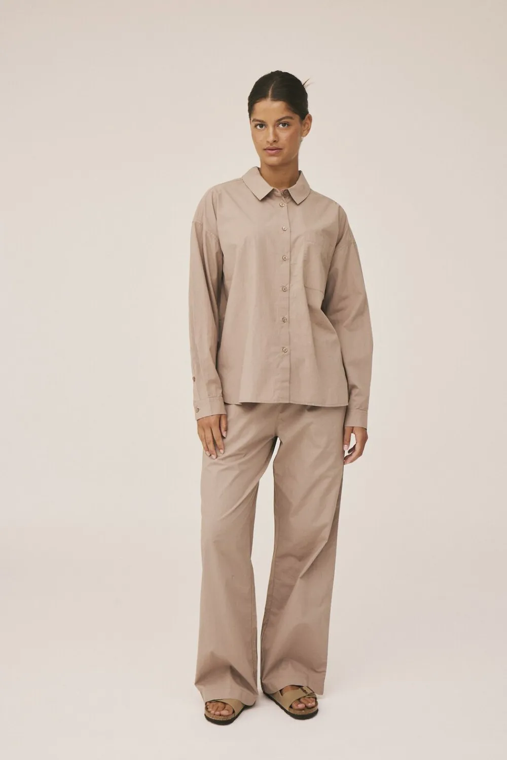 Bukser fra Magasin du Nord Collection i den blødeste kvalitet af 100% økologisk bomuld med GOTS-certificering. Bukserne er enkle i modellen med elastik og bindebånd i taljen, sidelommer, en enkelt baglomme samt lige bukseben med en løs pasform. Et par skønne bukser i en lækker kvalitet. Se også de andre fine styles i samme serie.