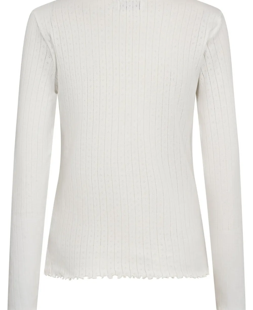 Bluse fra Magasin du Nord Collection i den blødeste kvalitet af 100% økologisk bomuld med GOTS-certificering. Blusen er enkel i modellen med det fineste hulmønster, bølge-, blonde- og ribkanter, lange ærmer samt en fin lille sløjfe på fronten. En skøn bluse i den absolut lækreste kvalitet.
