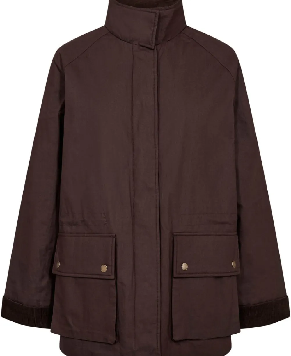 Vatteret jakke fra Magasin du Nord Collection i den lækreste kvalitet af 50% genanvendte fibre med GRS-certificering. Jakken er enkel i modellen med en coated overflade, et quiltet for, fløjlsdetaljer i kraven og de lange ærmer, frontlommer, en skjult trykknaplukning samt en lige pasform. En skøn jakke i en lækker kvalitet.