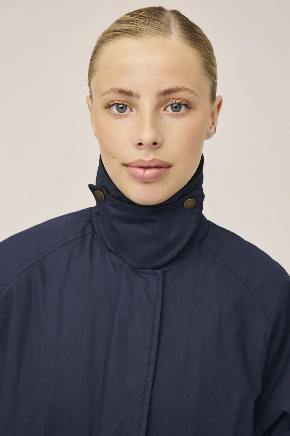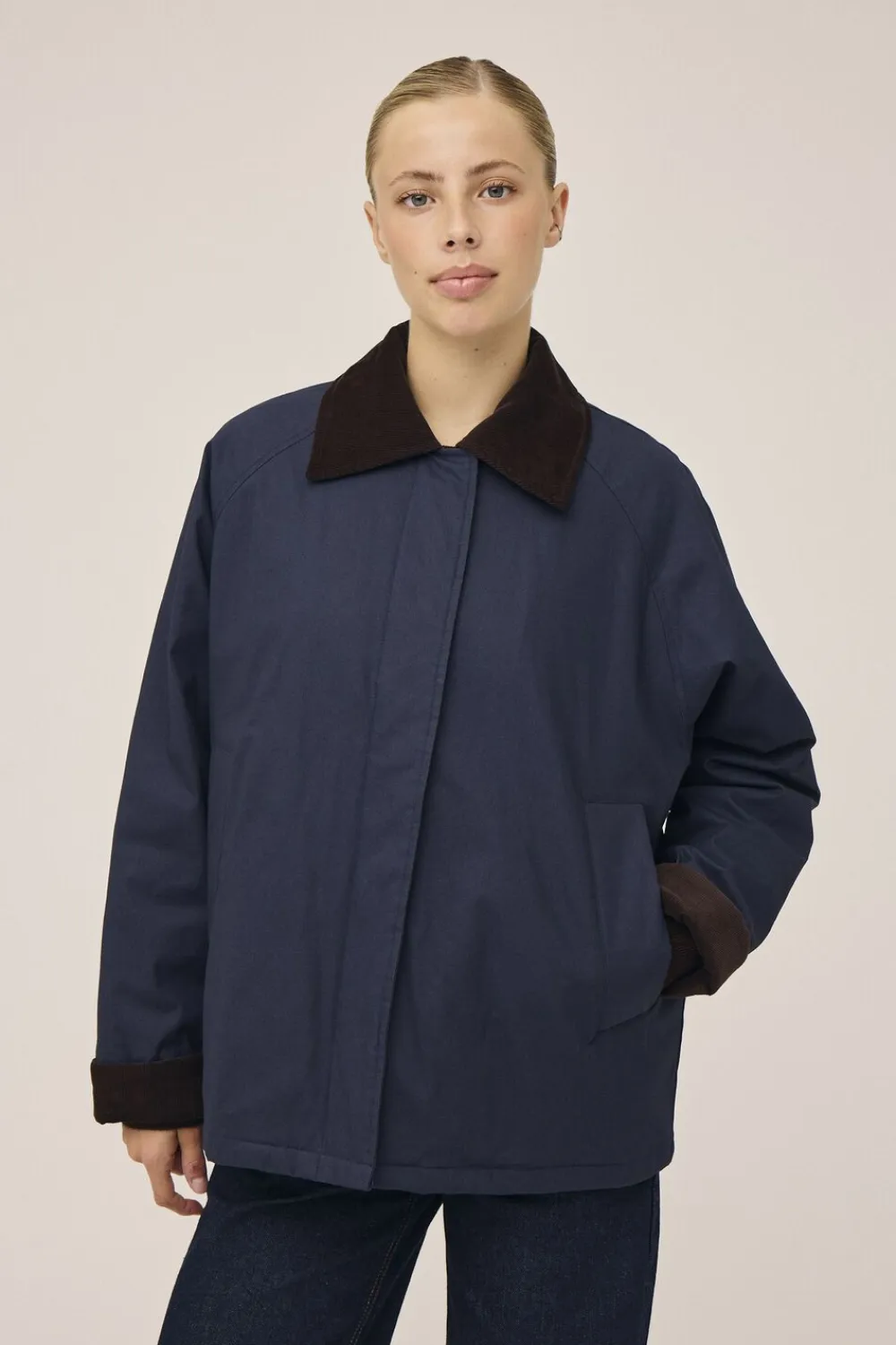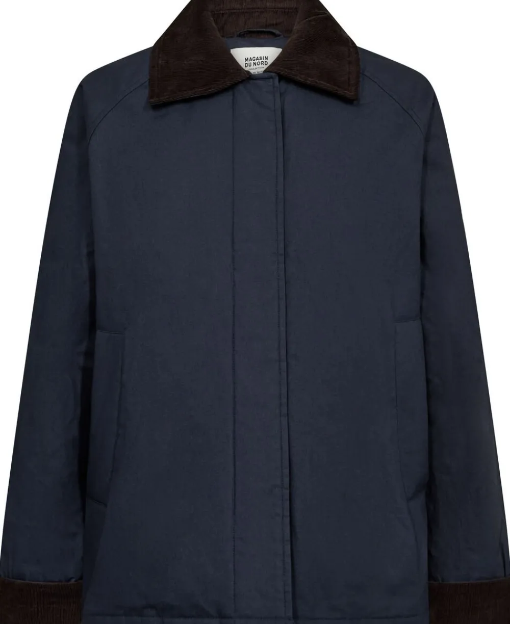 Jakke fra Magasin du Nord Collection i den lækreste kvalitet af 50% genanvendte fibre med GRS-certificering. Jakken er enkel i modellen med en coated overflade, forlommer, et quiltet for, lange ærmer, en kravefold af fløjl, en skjult knaplukning samt en lige pasform. En skøn jakke i en lækker kvalitet.
