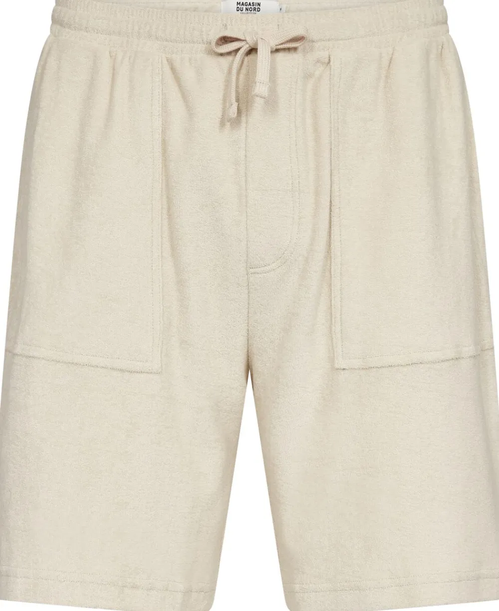 Shorts fra Magasin du Nord Collection i den blødeste kvalitet af 100% økologisk bomuldsfrotté med GOTS-certificering. Shortsene er enkle i modellen med elastik og snøre i taljen, sidelommer, en enkelt baglomme samt en løs pasform. Et par casual shorts i en lækker kvalitet.