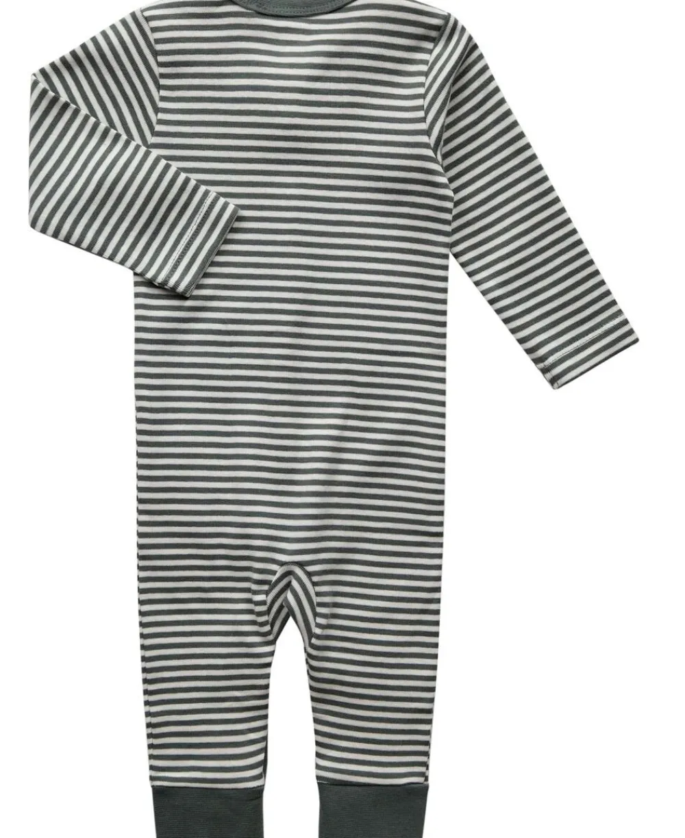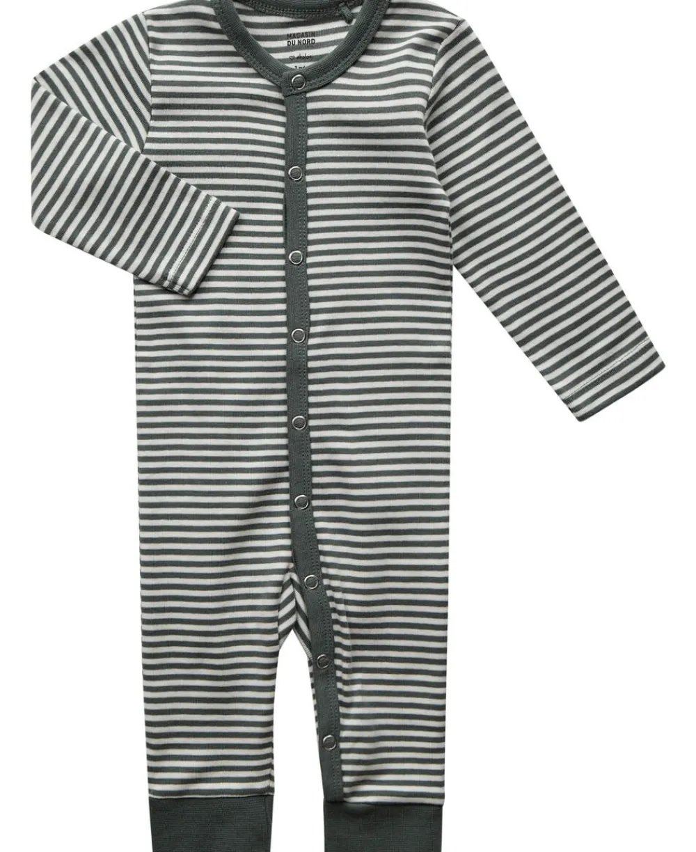 Heldragt fra Magasin du Nord Collection i den blødeste kvalitet af 100% økologisk bomuld med GOTS-certificering. Heldragten er enkel i modellen med et stribet mønster, trykknapper, ribkanter samt lange ben og ærmer. Den sødeste heldragt i den lækreste kvalitet.