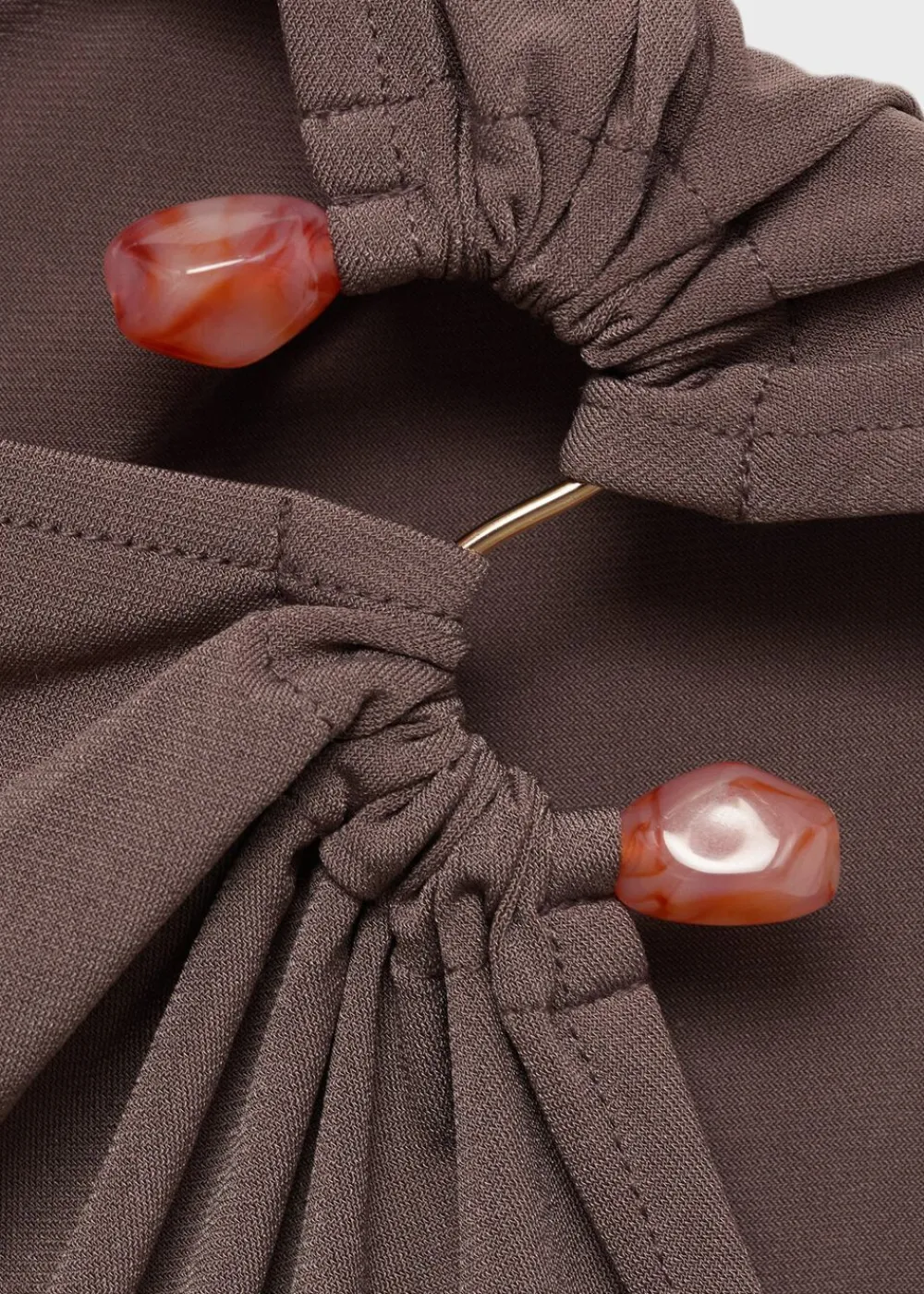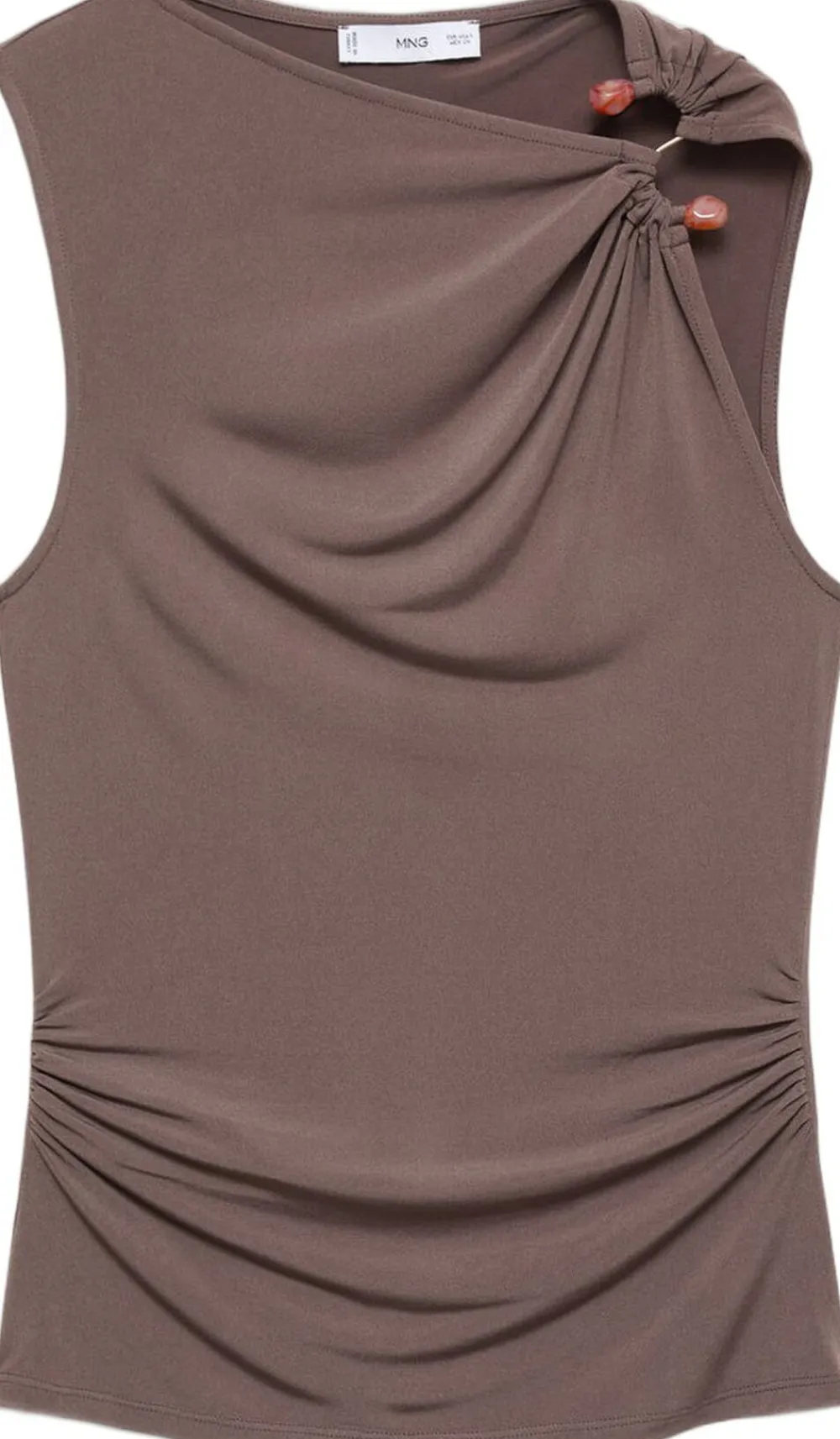 Tilpasset Design, dekorative smykker, asymmetrisk halsudskæring, uden ærmerBrede stropper, sideplisseringer, ingen fastgørelse.