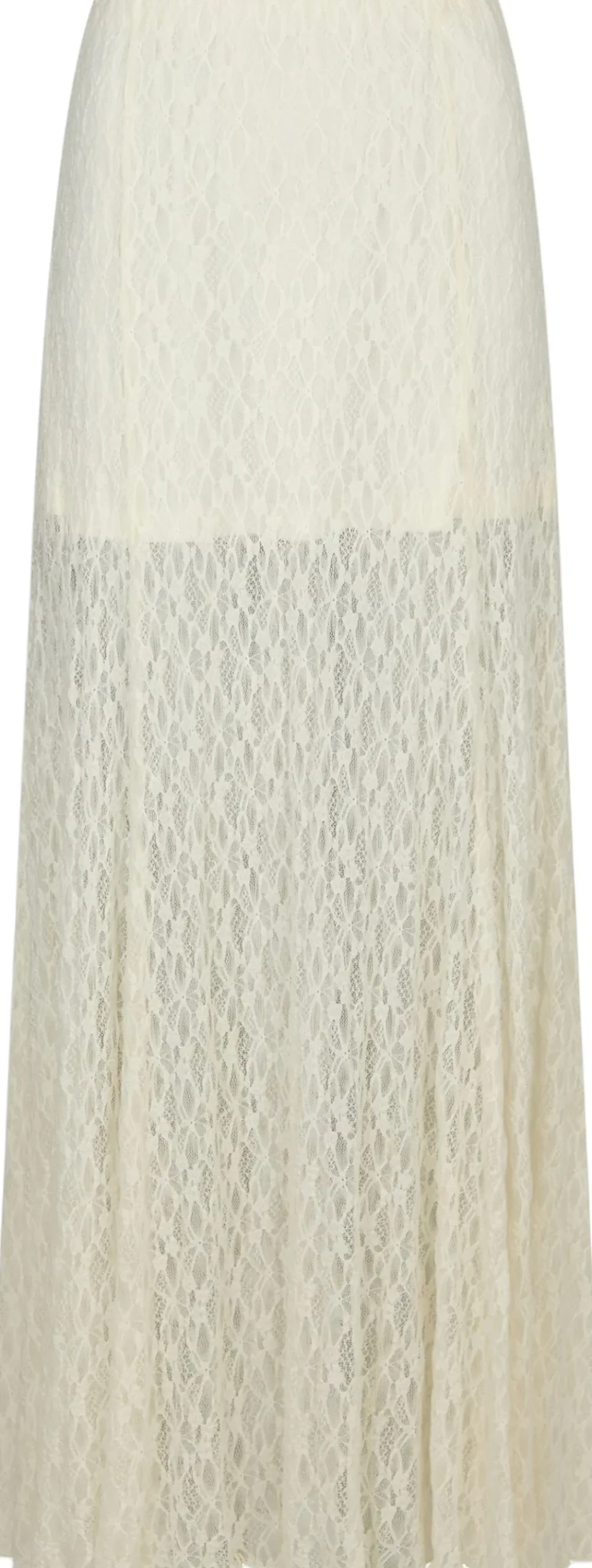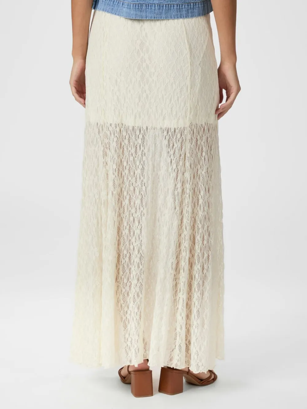Maxi nederdel i blonde. Nederdelen har en normal talje med elastisk og et kortere, fastsyet underskørt. Den er lavet i en blød og elastisk kvalitet. Pasformen er almindelig. Modellen er iført størrelse 36.