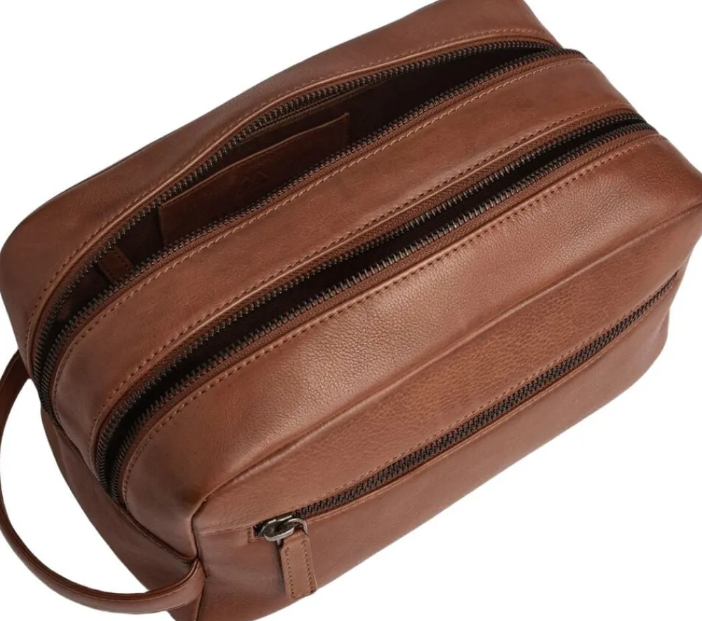 Everest Toiletry Bag fra Markberg Man er en stilren og funktionel toilettaske i 100% blødt kalveskind. De to separate rum gør det nemt at holde orden på dine toiletsager perfekt til både rejse og hverdag. Kvaliteten er LWG-certificeret og er en del af vores Zero Waste, hvor intet skind går til spilde i produktionen. Læderets struktur og nuance kan variere naturligt og giver tasken et unikt udtryk. På fronten har toilettasken en lynlåslomme, med plads til mindre ejendele. Dertil har den to hoved rum med god plads til toiletartikler, samt en lynlåslomme indvendigt. Toilettasken har en lille bærestrop i siden, til praktisk håndtering. Toilettaskens slidstærke for indvendigt er i 100% polyester og så måler den 25 cm x 13 cm x 12 cm.