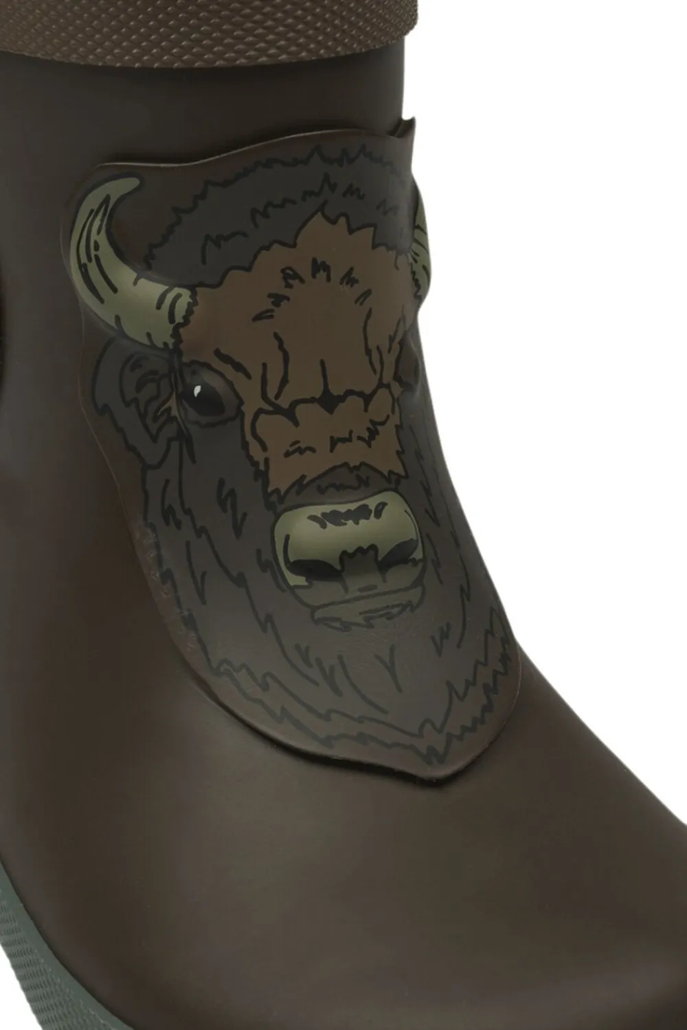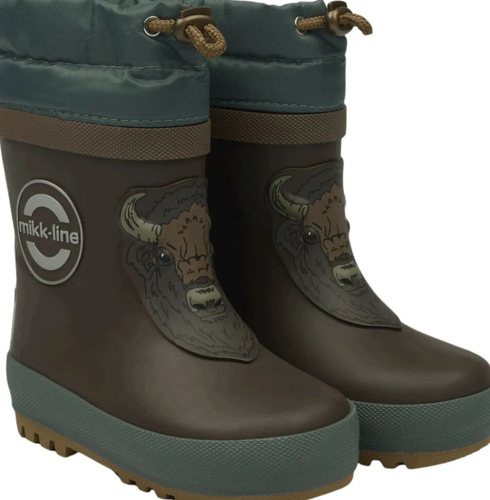 Mikk-line vintergummistøvler med lun foring og et sej 3D printdetalje af et knurrende, vildt dyr på støvleskaftet. De er lavet af naturgummi, og de er fri for ftalater. Gummistøvlerne er vandtætte, varme og praktiske til børn, der elsker at hoppe i vandpytter eller lege i vådt græs, sand eller sne. Disse gummistøvler fås i størrelse 19-38. GENNEMTÆNKT DESIGN – 3D printmotiv af et dyr på fronten af støvleskaftet. – Udstyret med snørebånd til at justere toppen af gummistøvlerne og minimere risikoen for at få vand eller sne ind i gummistøvlerne. – Varm og isolerende foring lavet af 30% uld, som også kan absorbere meget fugt uden at støvlerne føles fugtige indvendig. – Bløde og aftagelige indlægssåler, der giver dig mulighed for at finde den rigtige skostørrelse til dit barn. Hvis der kommer vand ind i gummistøvlerne, kan du fjerne indlægssålerne og hænge dem til tørre. – 3M-reflekser gør barnet mere synligt i mørket selv på lang afstand. – Det er sikkert at gå på glatte overflader, da gummistøvlerne har skridsikre ydersåler med riller til at lede vandet væk. – Naturgummi. – Uden ftalater, tungmetaller, klorparaffiner og PAH’er. STØRRELSESGUIDE (Længde på indlægssål målt i centimeter) 19 12,5 20 13,1 21 13,8 22 14,5 23 15,1 24 15,8 25 16,5 26 17,1 27 17,8 28 18,4 29 19,1 30 19,8 31 20,4 32 21,1 33 21,7 34 22,4 35 23,1 36 23,8 37 24,5 38 25,1 PLEJEVEJLEDNING – Brug en vandbaseret imprægneringsspray (helst uden PFAS) til regelmæssigt at imprægnere gummistøvlerne. Dette hjælper med at fugte gummistøvlerne og forhindre dem i at revne. Undgå at sprøjte på ydersålen, da den kan blive glat. – Rengør gummistøvlerne ofte. Brug en blød klud med vand og en skånsom sæbe. – Lad gummistøvlerne tørre ved stuetemperatur. Hvis der er vand indeni støvlerne/gummistøvlerne, fyld dem med avispapir der kan suge vandet. – Undgå at udsætte gummistøvlerne for sollys og ekstremt høje eller lave temperaturer i længere perioder. – Opbevar gummistøvlerne oprejst et tørt, mørkt og køligt sted.