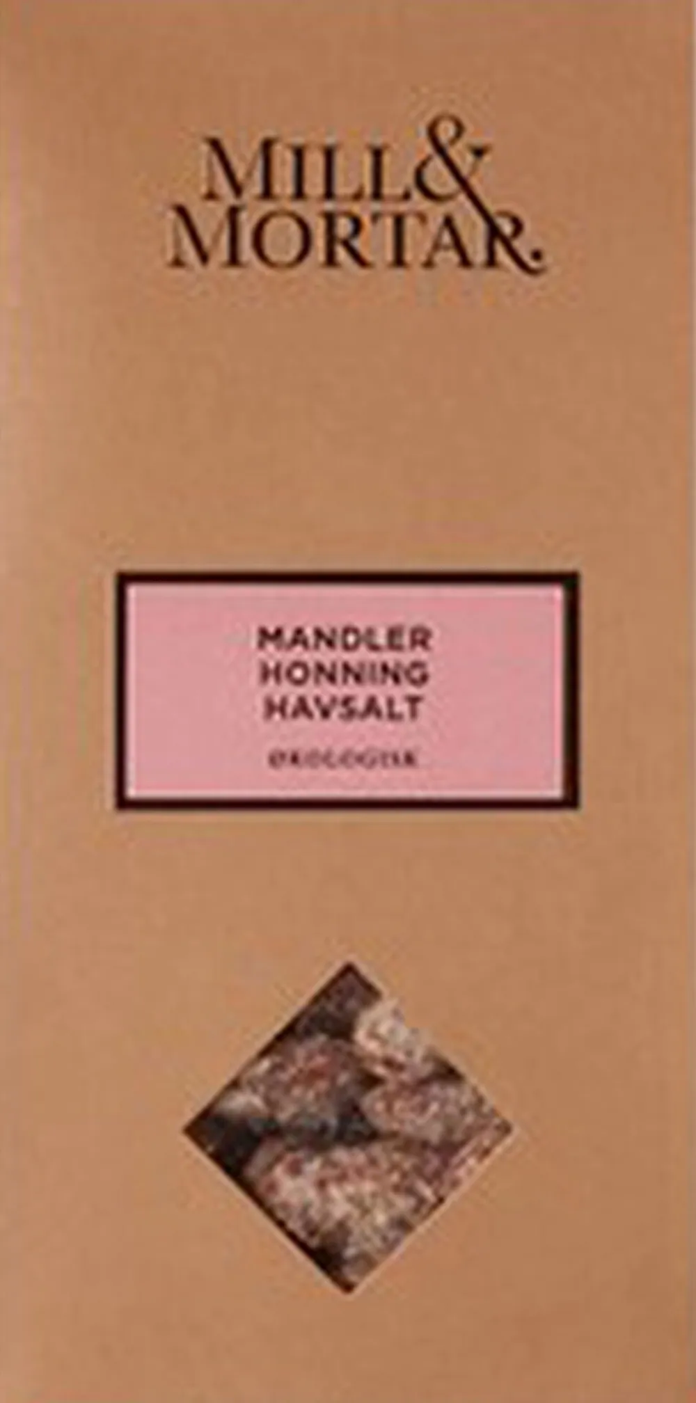 Mandler* 72%, rørsukker*, multiflora honning* 7,2%, ekstra jomfruolivenolie*, havsalt 1,4%. *=Økologisk.