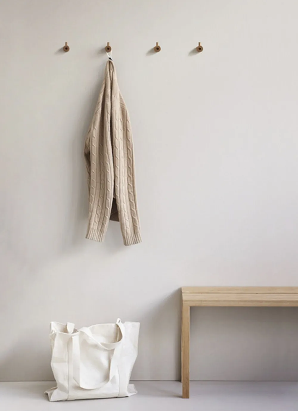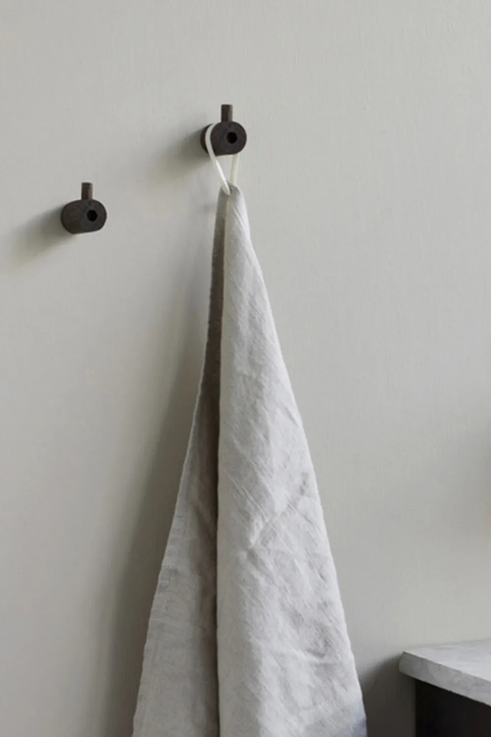 Wooden Wall Hook is formed from two pieces of solid oak. The larger part is attached to the wall with the second then slotting into the firstÂfrom above, which hides the screw and gives the perfect hanging point