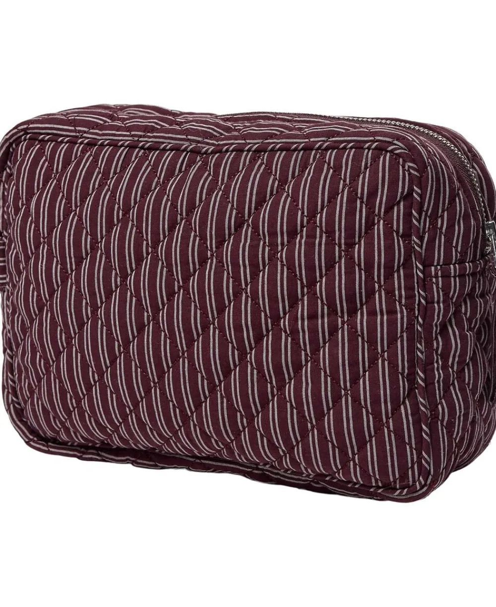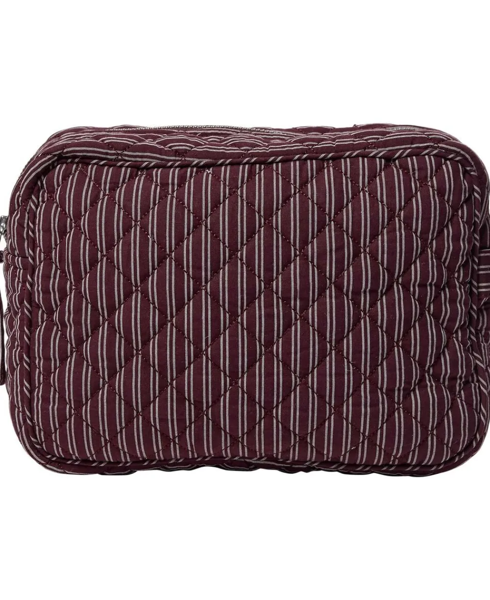 Toilettaske fra Magasin du Nord Collection i den blødeste kvalitet af 80% økologisk bomuld med GOTS-certificering. Toilettasken består af ét stort rum med lynlåslukning samt mindre inderlommer. Derudover har toilettasken fine vatterede syningsdetaljer og et stribet print. En skøn toilettaske i den lækreste kvalitet.