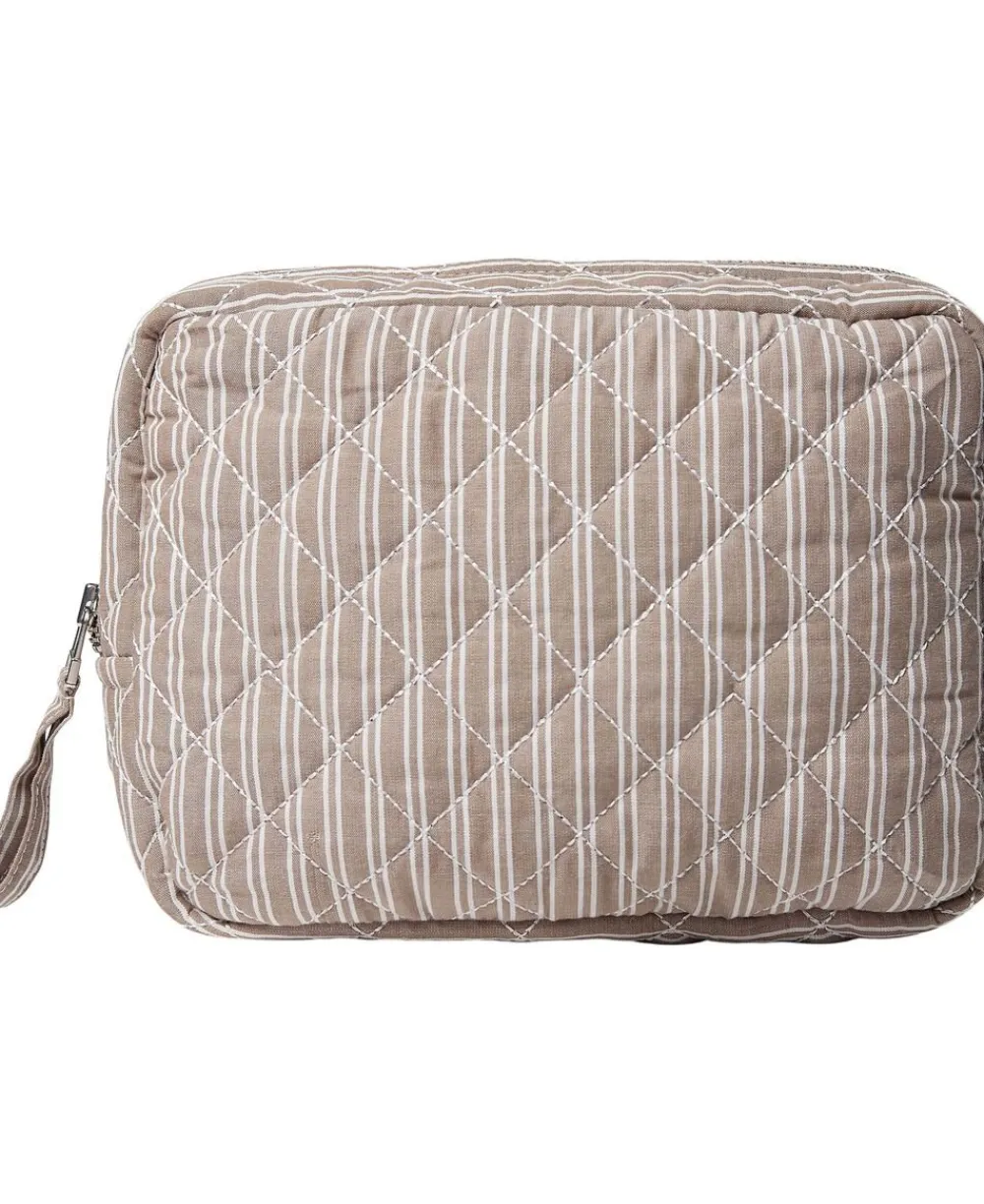 Toilettaske fra Magasin du Nord Collection i den blødeste kvalitet af 100% økologisk bomuld med GOTS-certificering. Toilettasken består af ét stort rum med lynlåslukning samt mindre inderlommer. Derudover har toilettasken et lille håndtag samt fine vatterede syningsdetaljer. En skøn toilettaske i den lækreste kvalitet.