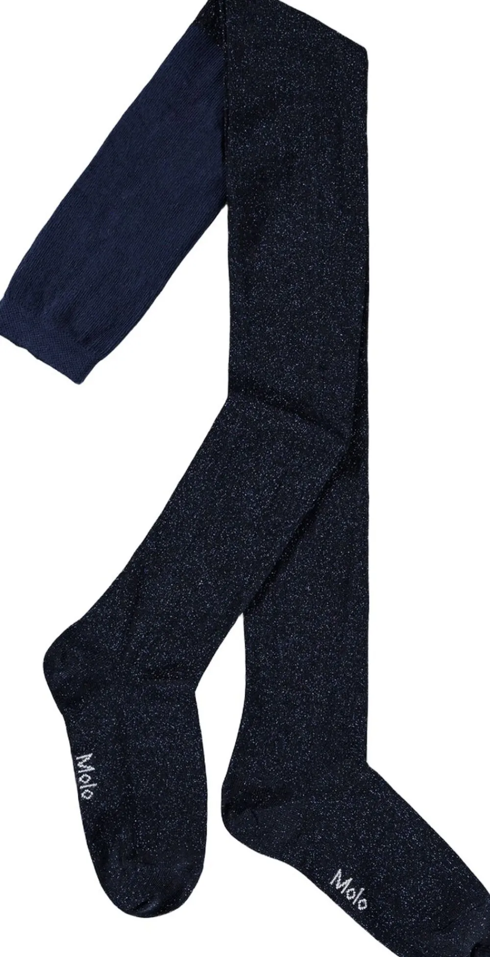 Blå finstrikkede glimmerstrømpebukser fra Molo i blød bomuld med elastik i taljen.