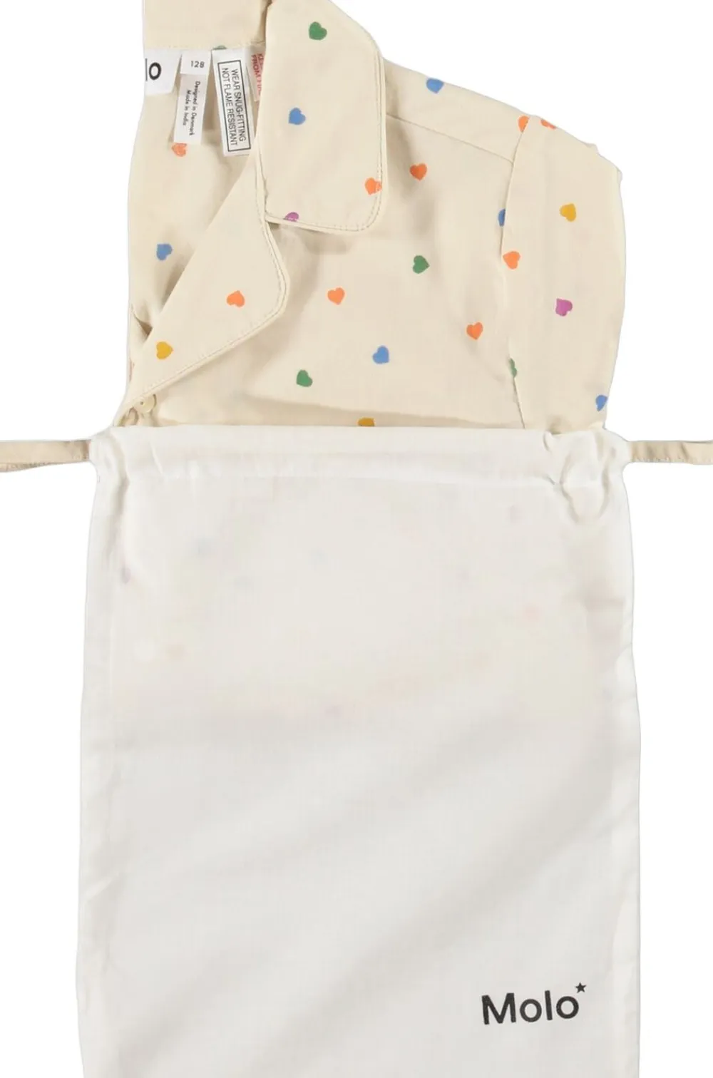 Dette todelte pyjamas sæt er ideelt til en god nats søvn. Skjorten med lange ærmer har en praktisk brystlomme og knaplukning, der giver en komfortabel pasform. Shortsene har elastik og snøre i taljen for en justerbar pasform. Den bløde materiale sikrer behagelighed hele natten, perfekt til afslapning og leg. Designet appellerer til både børn og forældre.