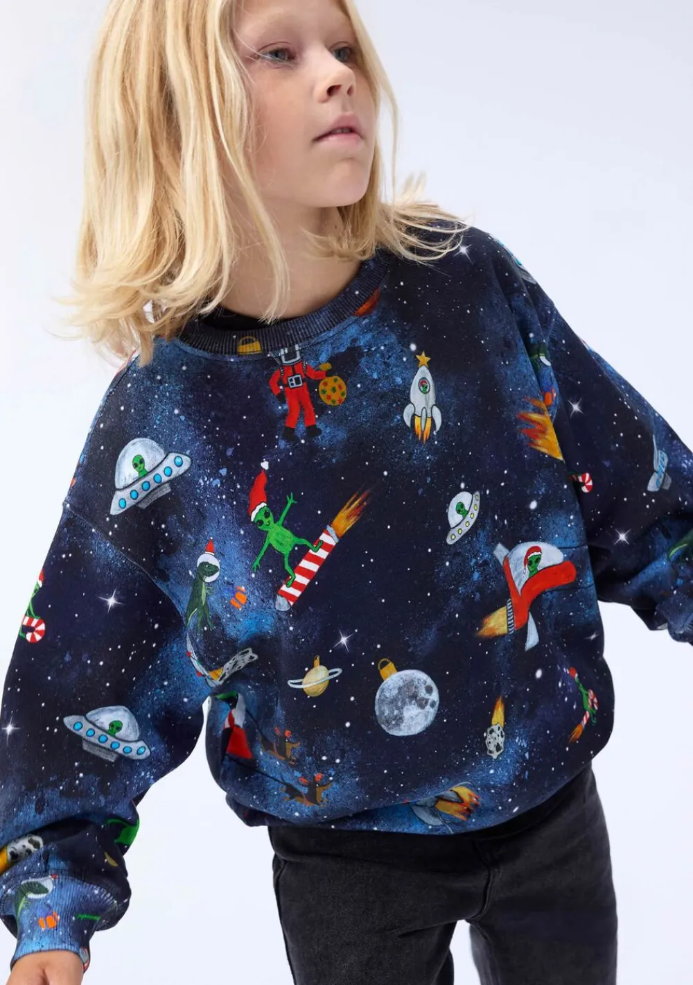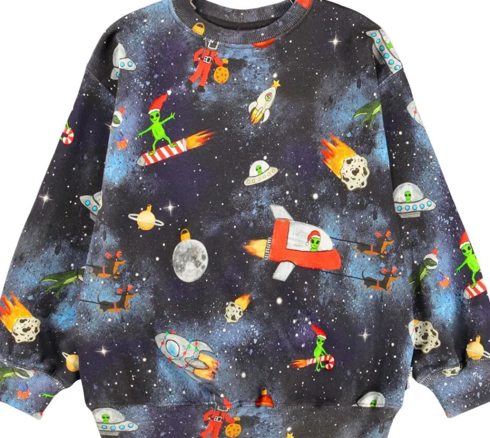 Denne sweatshirt fra Molo er lavet af blødt økologisk bomuld. Sweatshirten har ribkanter ved hals, ærmer og i bunden af blusen samt en løs pasform.
