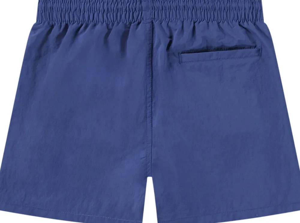 Sporty badeshorts til aktive børn, lavet af genanvendt nylon med UV-beskyttelse 50+. Shortsene har en løs pasform, der går til midt på låret, og de er udstyret med en praktisk baglomme, elastik og snøre i taljen samt indershorts i blødt mesh for ekstra komfort.