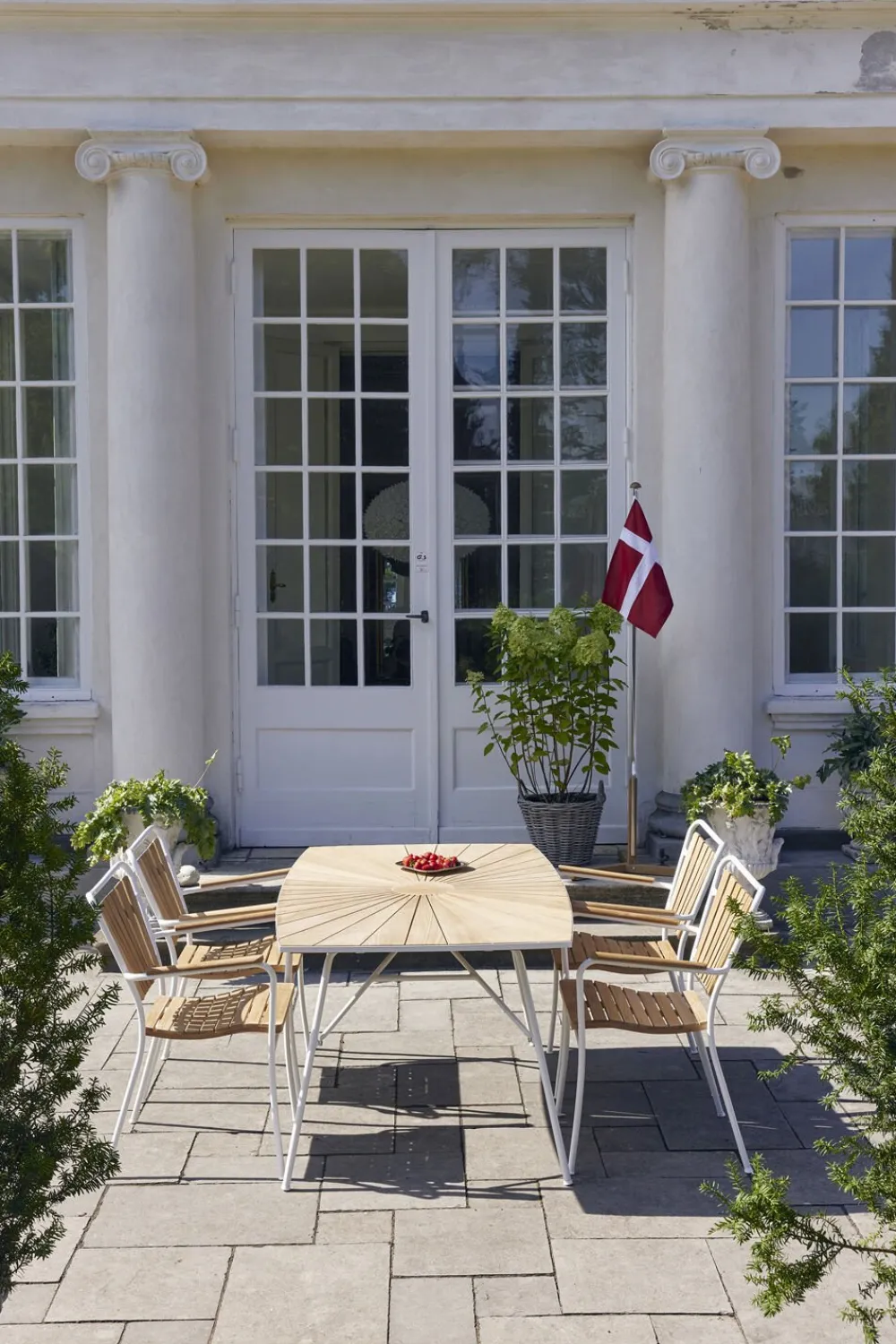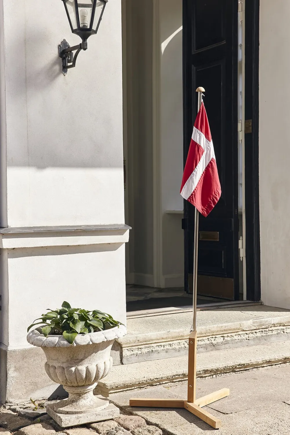 Flagstang i teak & rustfrit stål med Dannebrogsflag. Flagstangen er i rustfrit stål og med fod og knop i bæredygtig indonesisk teak. Byd gæsterne velkommen ved indgangen til festen, i din opgang eller placer den ved gavebordet, når der skal fejres mærkedage.Leveres med et smukt forarbejdet Dannebrog af bomuld. Det er desuden let at udskifte Dannebrogsflaget med andre flag.