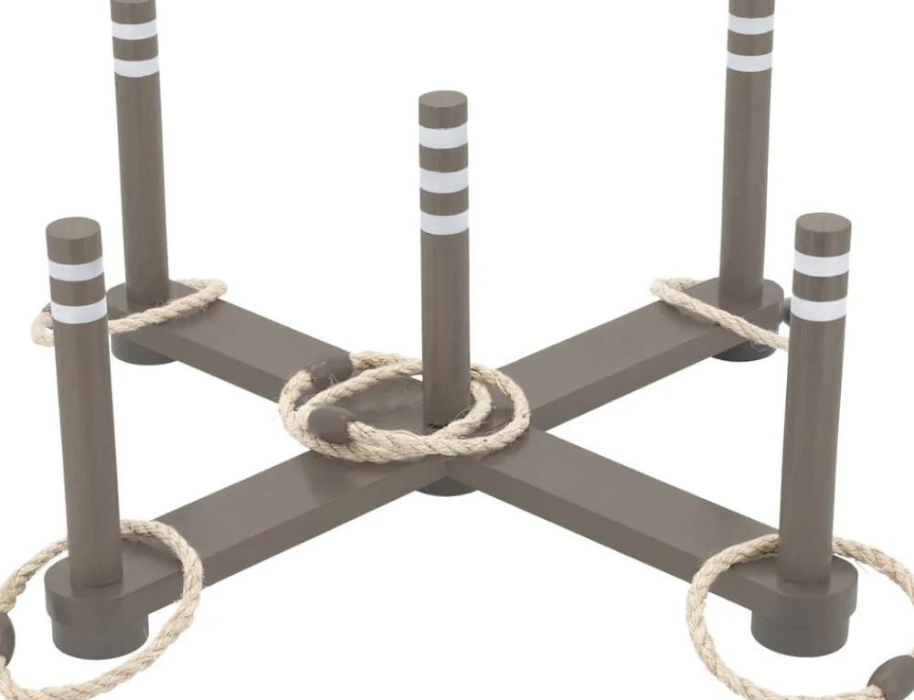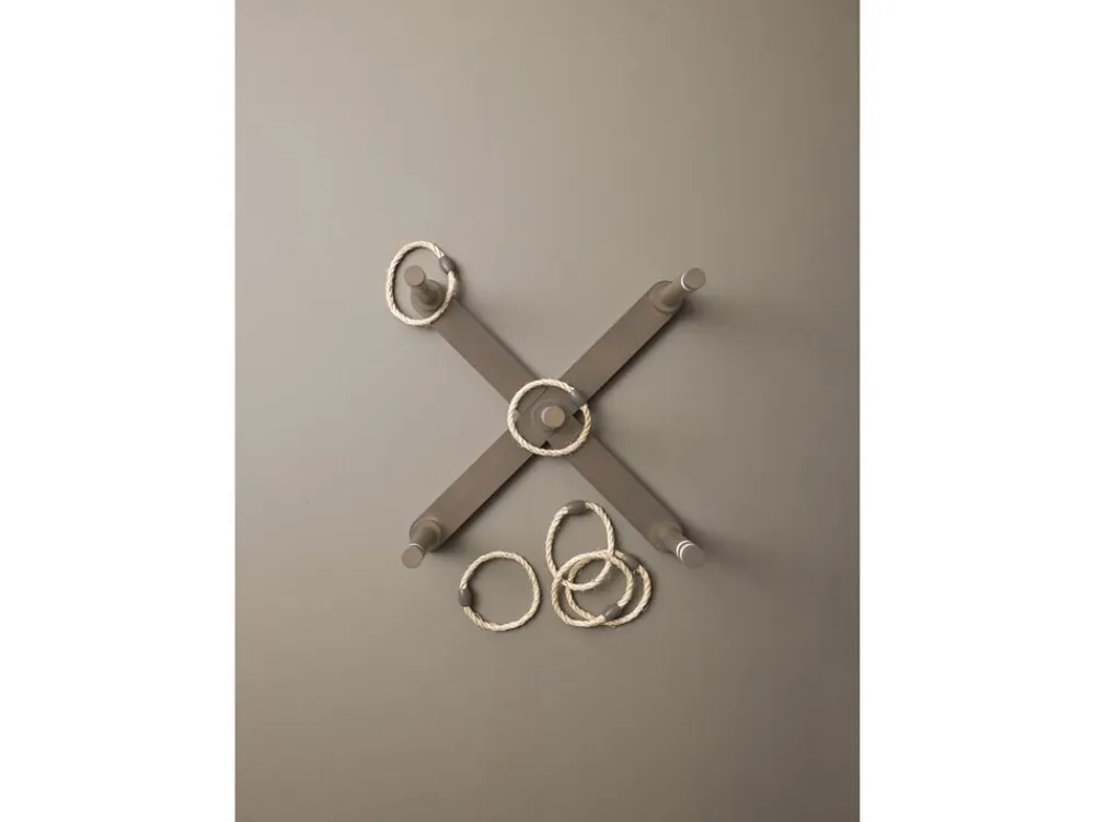 Spil det hyggelige ringspil i haven, i sommerhuset, på stranden eller til havefesten. Spillet består af et stativ og fem ringe går ud på at score flest point ved at kaste ringene, så de lægger sig om pindene på stativet. Der medfølger spilleregler på dansk og engelsk samt en lækker stofpose til transport og opbevaring af spillet. Spildelene leveres usamlet og er fremstillet af robust og smukt bejdset gummitræ. Tør delene over med en fugtig klud efter brug og opbevar dem altid i tør og rengjort stand, så holder spillet længere og giver større fornøjelse.
