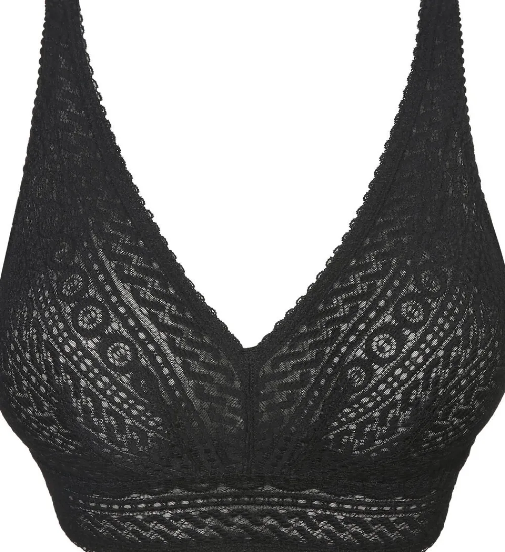 Har du set denne nyhed fra PrimaDonna ? Trendy triangle bh uden bøjle. All over blonde med et moderne grafisk design. Det brede stykke under barmen og i rygstykket sikre dig både komfort og funktionalitet og kan bruges af alle. Trendy sort blonde i tidløst desigen