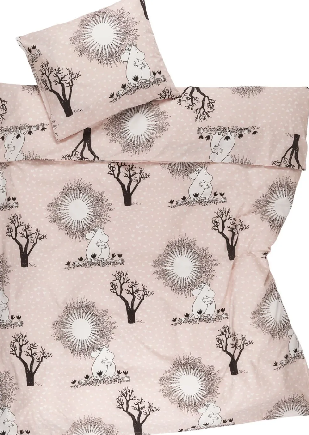 Fald i søvn omgivet af kærlighed. De to kærester, Snorkmaiden og Moomintroll, krammer hinanden tæt efter endnu et af deres spændende eventyr. Den elskede illustration stammer fra Tove og Lars Janssons tegneserier og er nu også tilgængelig som et sengesæt. Moomin Arabia Single sæt 140×200 Love