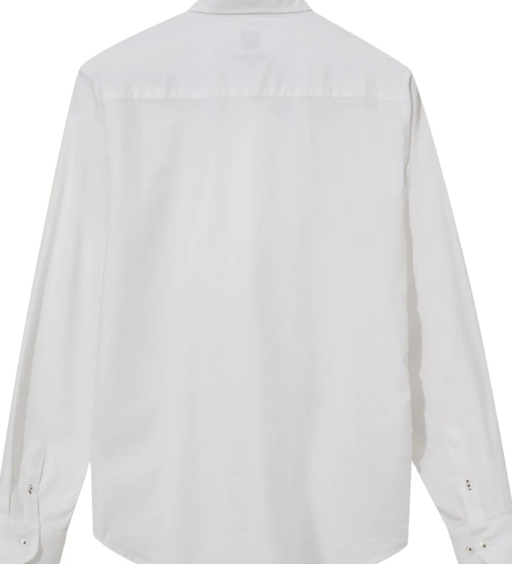 En tidløs nødvendighed med en moderne kant. Denne klassiske skjorte har en almindelig pasform med en skarp krave, lange ærmer og raffinerede manchetter med knapper – designet til at tage dig fra kontortid til eftertid med lethed. Den er fuldendt med en ren knaplukning og passer ubesværet sammen med skræddersyede bukser eller afslappet denim.