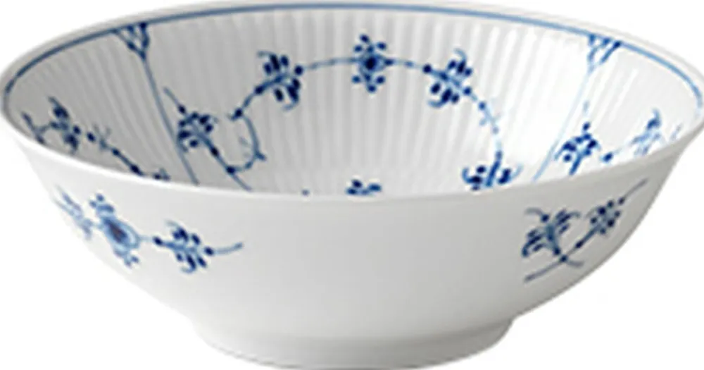 Musselmalet Riflet fascinerer med sin klassiske alsidighed. Den yndefulde dekoration fremhæver de delikate former og det fine håndværk, der ligger bag hver steldel. Musselmalet Riflet er et tidløst stel