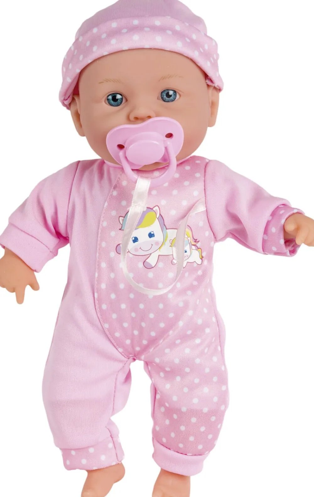 Mathilde græde-/suttedukke 31 cm Med græde- og suttelyde Med on/off-knap på ryggen af dukken Inkl 3 stk knapcellebatterier