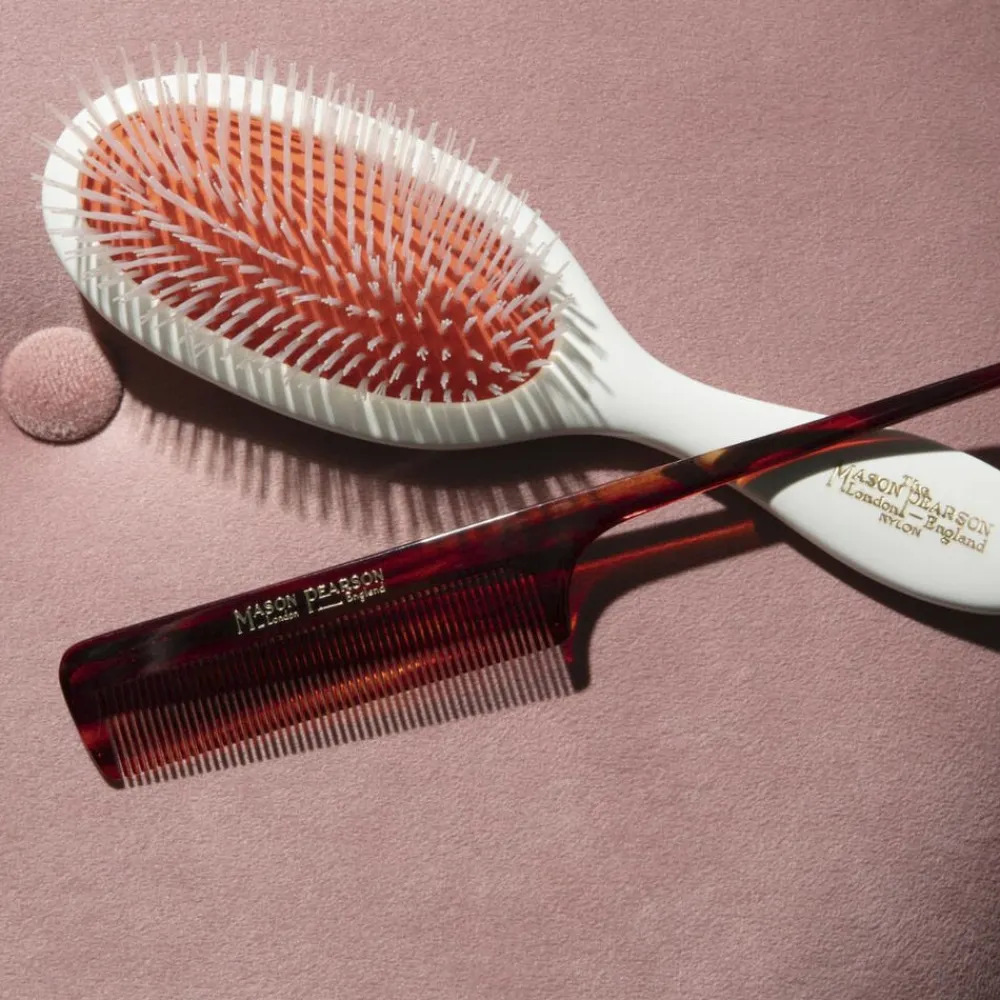 Mason Pearson N3 er den næstmindste hårbørste i sortimentet og er lavet af ren nylon. Mason Pearson børsten i nylon er kun beregnet til udredning af filtret hår og har ikke den samme plejende effekt som de øvrige Mason Pearson børster lavet af ren vildsvinehår eller i et mix af vildsvinehår og nylon.