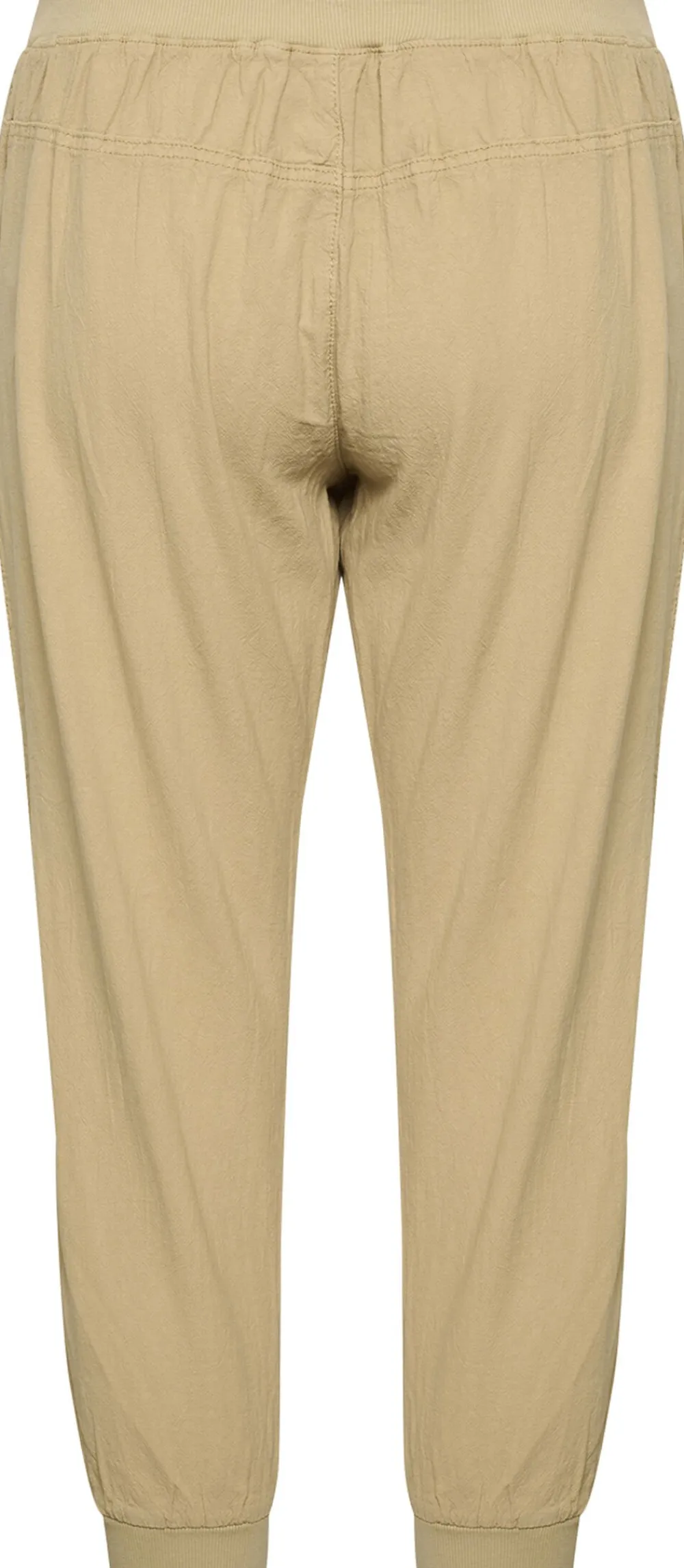 Virkelig behagelige cropped bukser fra KAFFE Bukserne har en længde til under knæet med ribkant Bukserne har derudover en lækker 1 bomuldskvalitet elastikkant med snore og et regular fit Det er uden tvivl en buks som ud over dens behagelighed