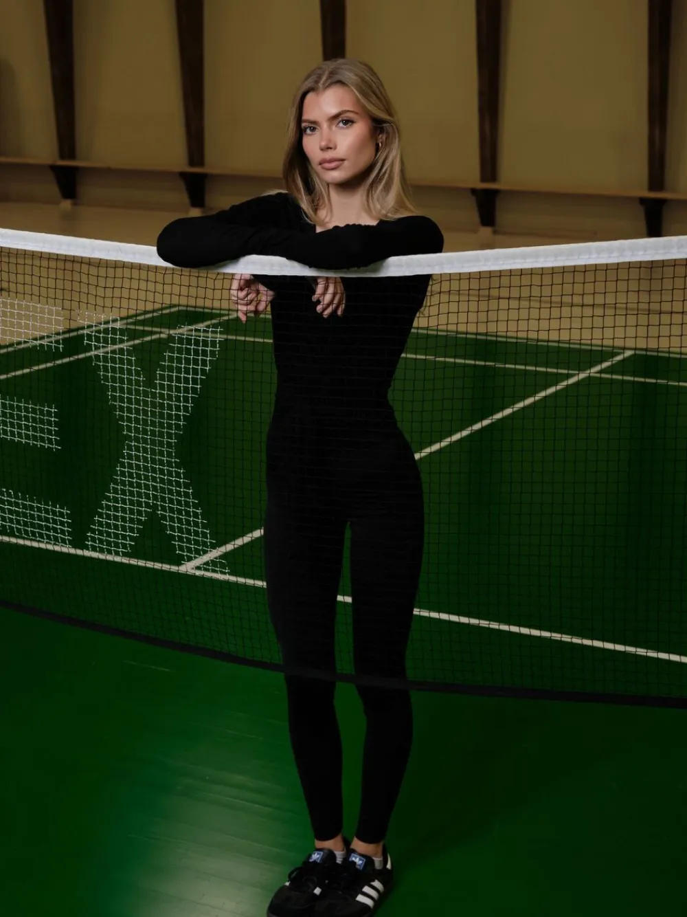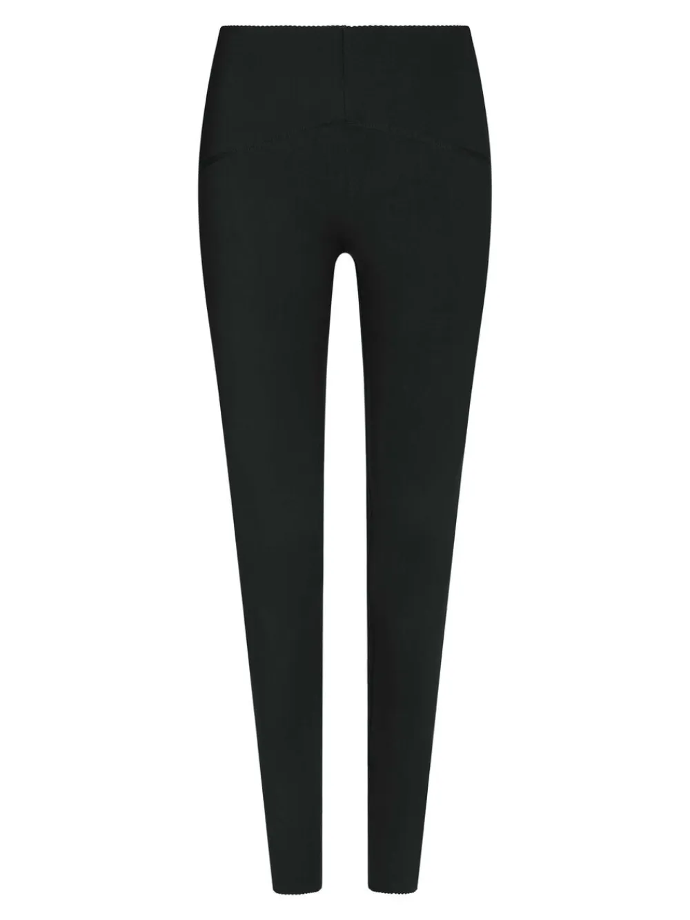 Højtaljede leggings med bølgekant i taljen. De er lavet i et materiale med stræk. Modellen er iført størrelse 36.