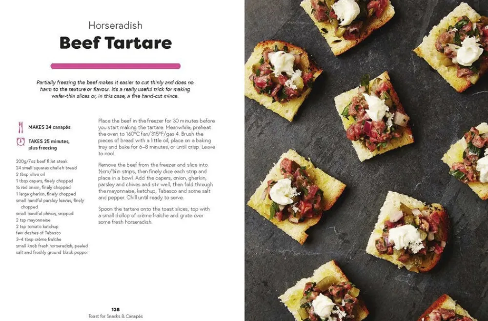 Seriøst god toast indeholder alle de toastopskrifter, du nogensinde kan få brug for, med opskrifter til morgenmad, frokost, snacks og aftensmad. Start din dag med Eggs Royale, sæt dig ned og få en hurtig bid mad med Mozzarella og Kale Pesto, eller forkæl dig selv med Tuna Tartare. Med over 70 supersimple opskrifter samt en guide til grundlæggende brødristning er dette den ultimative kogebog for alle, der elsker toast.