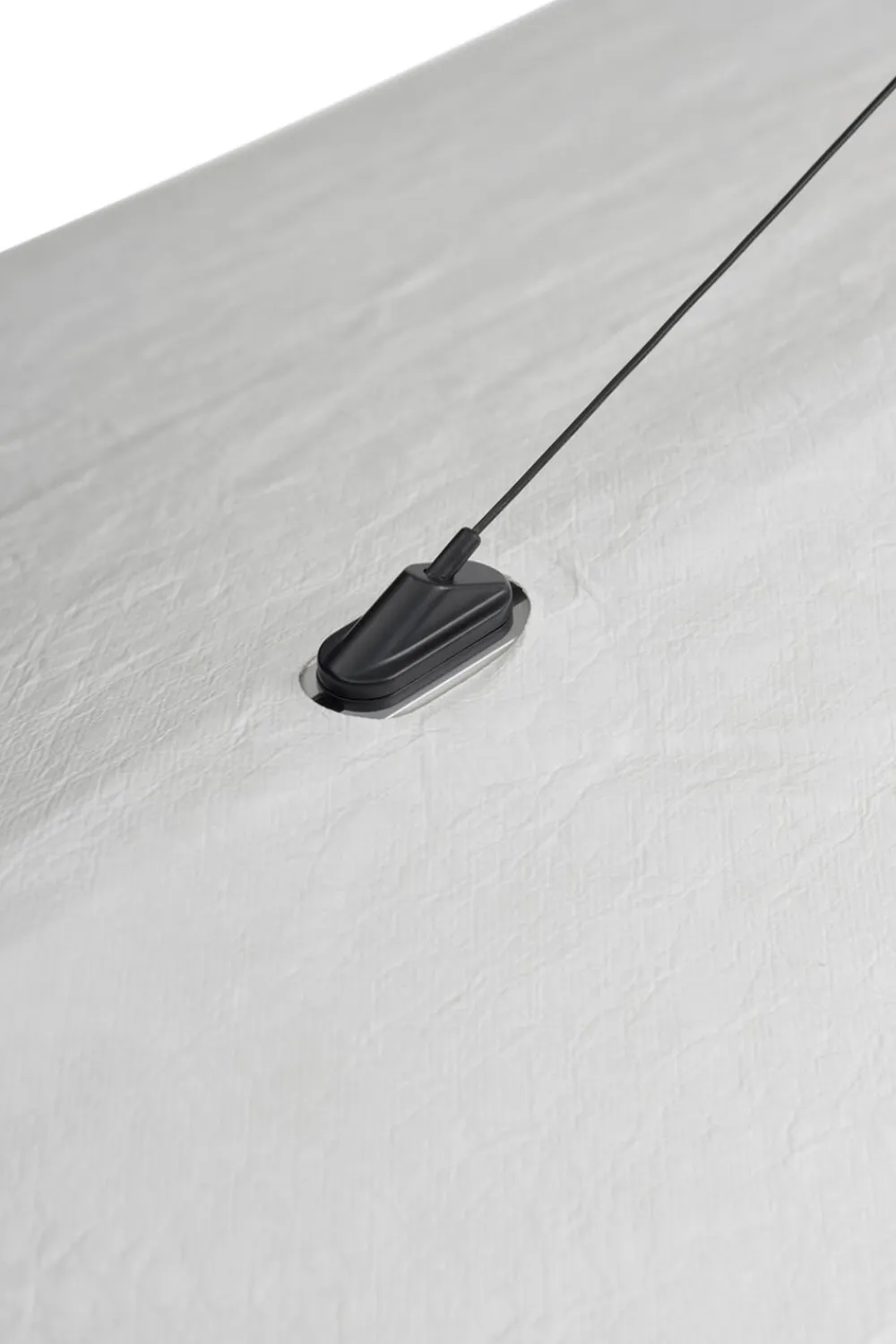 Tense pendel strækker sig ud som en blød sky. Lampens overflade er fremstillet i et materiale der i sin farve og struktur, minder og et stykke hvidt papir. Materialet er i virkeligheden det innovative materiale