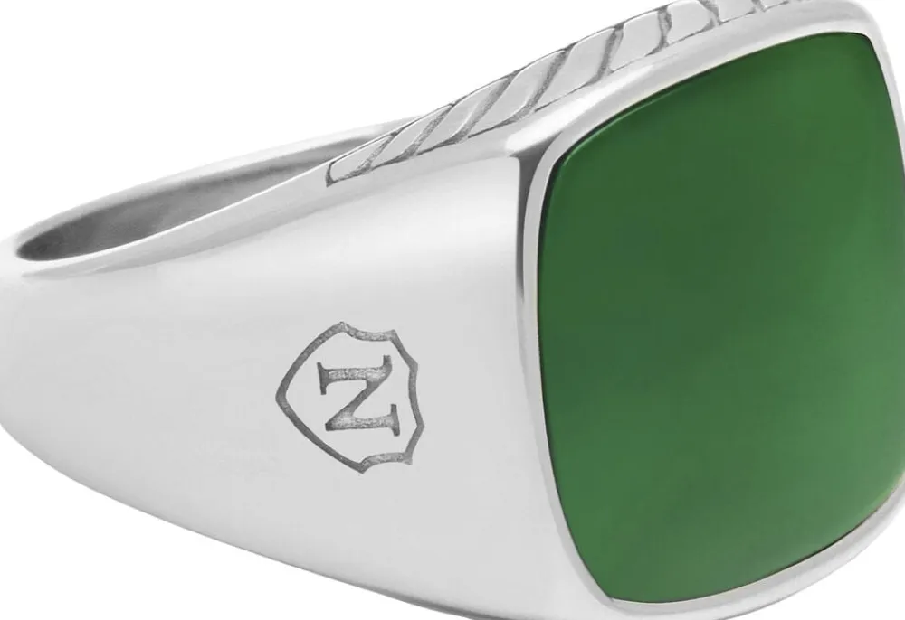 Skiltring til herrer med allergivenligt rustfrit stål, blå dumortieritsten og indgraverede detaljer. Håndlavet i Los Angeles