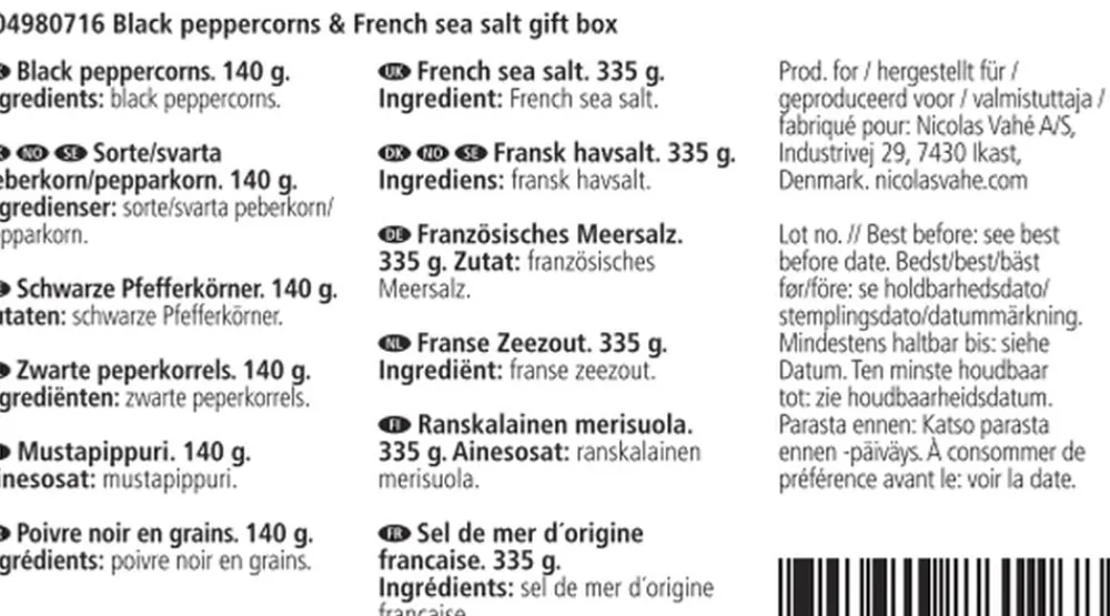 Denne gaveæske fra Nicolas Vahé indeholder en essentiel krydderiduo til både hverdag og fest. Det franske havsalt er udvundet fra Middelhavet og er perfekt til stort set hvilken som helst ret og hvilken som helst lejlighed. De sorte peberkorn, der er lige så klassiske og populære, gør denne duo perfekt til spisebordet. Giv den som værtindegave eller til en ven eller nabo. Alle elsker en overraskelse af den kulinariske slags.