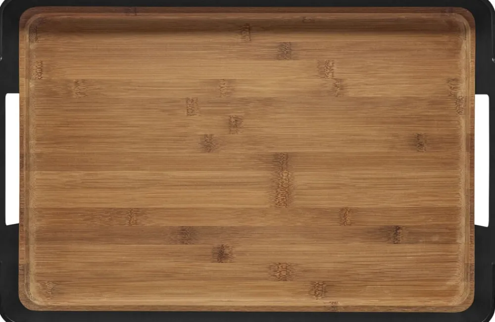 Den stilfulde og praktiske Rektangulære serveringsbakke er ideel til at servere alt fra morgenmad på sengen til kaffe i stuen. Bakken er rummelig og har høje kanter, som sikrer, at indholdet bliver, hvor det skal, mens de solide bæregreb giver ekstra stabilitet, når du flytter på den. Bambus giver et naturligt udtryk, mens den matsorte finish tilføjer et strejf af moderne elegance. Det smukke design gør, at bakken også kan bruges som en dekorativ del af din indretning, perfekt til at arrangere nips, lysestager og blomster.
