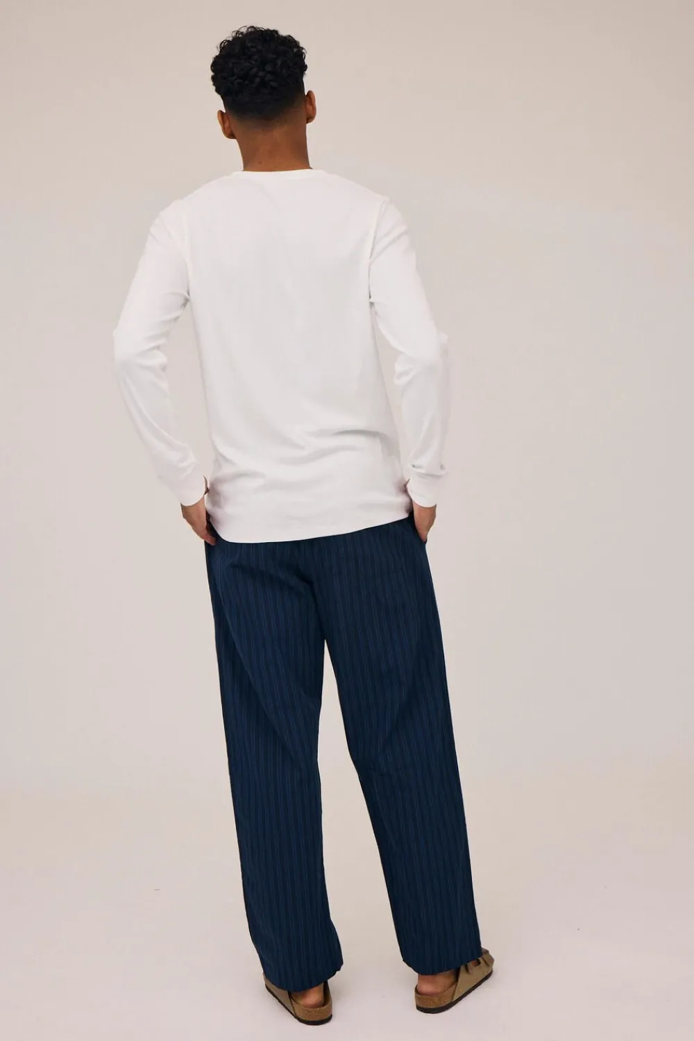 Pyjamasbukser fra Magasin du Nord Collection i den blødeste kvalitet af 100% økologisk bomuld med GOTS-certificering. Bukserne er enkle i modellen med en bred elastik og snøre i den høje talje, sidelommer, en enkelt baglomme samt lige, vide bukseben. Et par skønne pyjamasbukser i den lækreste kvalitet. Global Organic Textile Standard (GOTS) certificeringen sikrer en sporbar forsyningskæde af økologisk materiale, der overholder strenge miljø- og kemikrav samt ordentlige arbejdsforhold i alle led. Økologisk materiale kommer fra landbrug, hvor man arbejder med naturen på en måde så både økosystemer og biodiversitet opretholdes. Det betyder, at der ikke benyttes giftige kemikalier, at vandforbruget begrænses og at der i højere grad anvendes regnvand i produktionen.