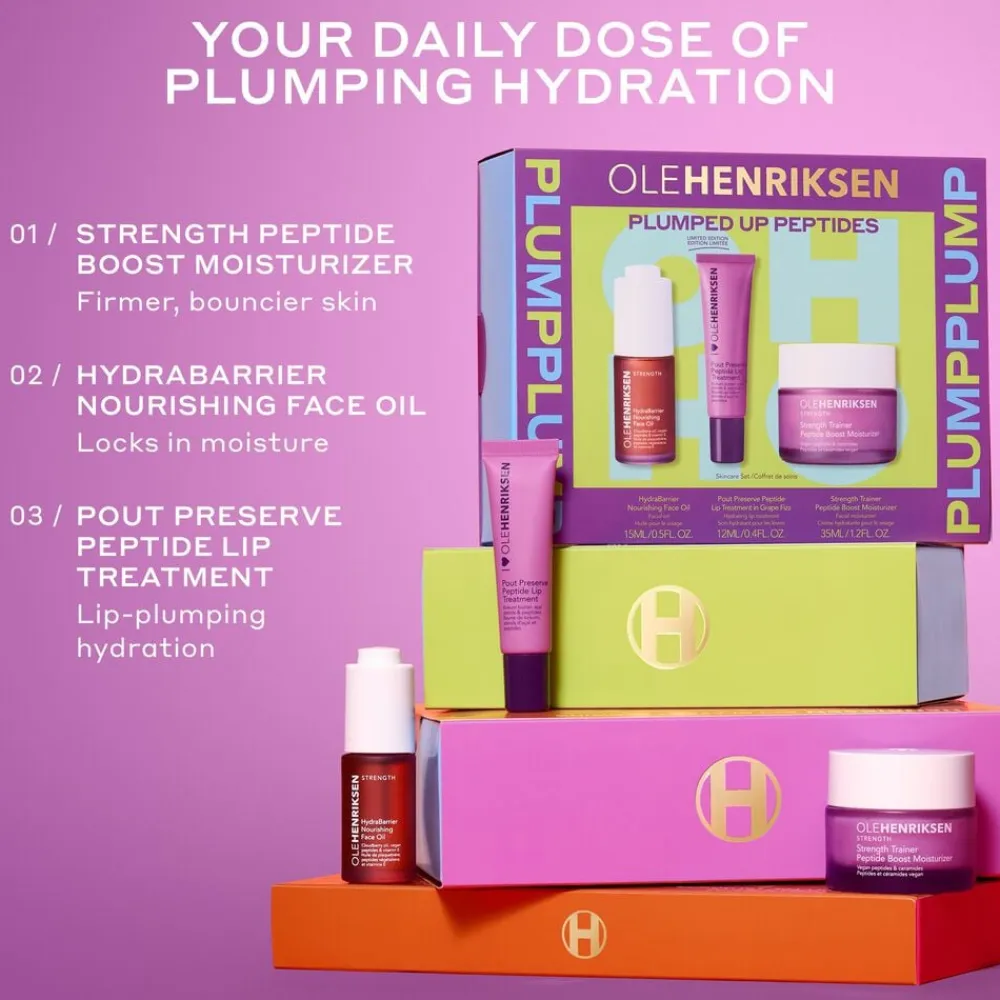 Ole Henriksen Strength Gaveæske – Holiday EditionEn julegave med styrke, fugt og masser af glow. Forkæl dig selv eller én du holder af med dette limited edition-sæt fra Ole Henriksen. Tre power-produkter designet til at styrke og fugte huden – med synlige resultater. Sættet indeholder:* Strength Trainer Peptide Boost Moisturizer 35 ml* Strengthening Face Oil 15 ml* Pout Preserve Peptide Lip Treatment 12 mlHudpleje, der gør en forskel – pakket ind og klar til at glæde. Værdi: 770 DKK