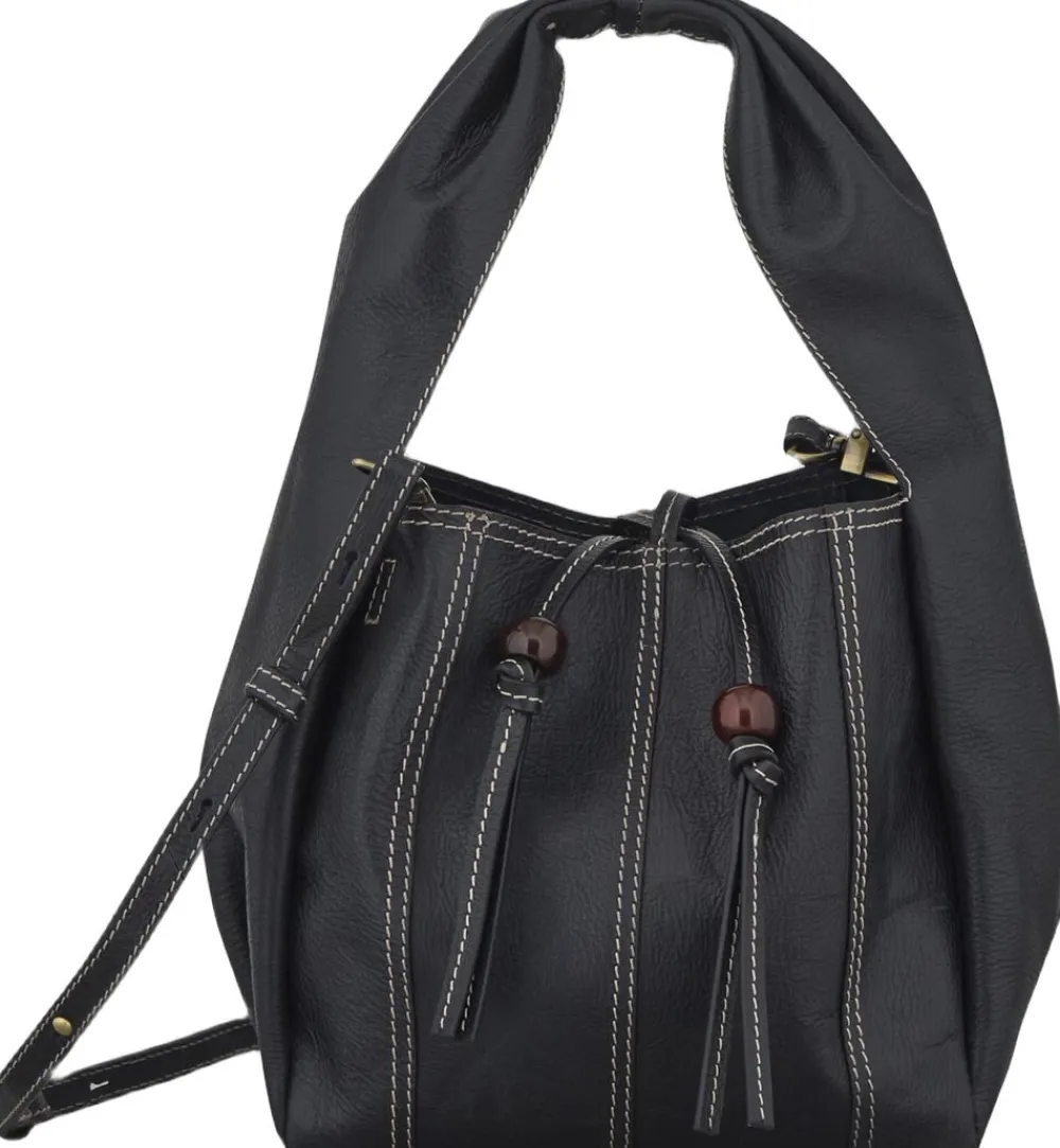 Panel Harper Bag fra Becksöndergaard er en stilfuld taske, der er perfekt til både hverdag og fest. Tasken er i 100% ko læder og måler 22 x 21 cm. Den har et stort rum med en lille lynlåslomme, der holder dine småting organiseret. Med to remme, en kort til skulderen eller hånden og en lang, justerbar, kan tasken bæres både som skuldertaske, håndtaske og crossbody. Lukkemekanismen med snøre giver et moderne touch.