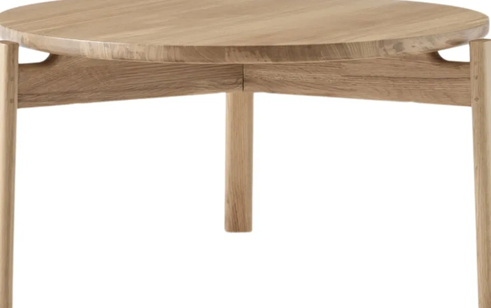 Loungebordet Passage fra Audo er lavet af egetræ. Det runde design og den massive eg skaber en følelse af ro i ethvert rum. Uanset om det bruges til kaffebordsbøger, fjernbetjeningen eller din yndlingsvase, som fortjener at blive vist frem, tilfører bordet en stilfuld lethed. Bordet leveres usamlet, hvilket giver dig mulighed for at interagere med designet og opleve den høje kvalitet, før det samles og tages i brug som et sofabord eller sidebord.