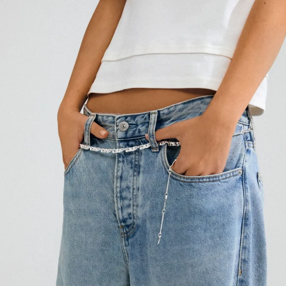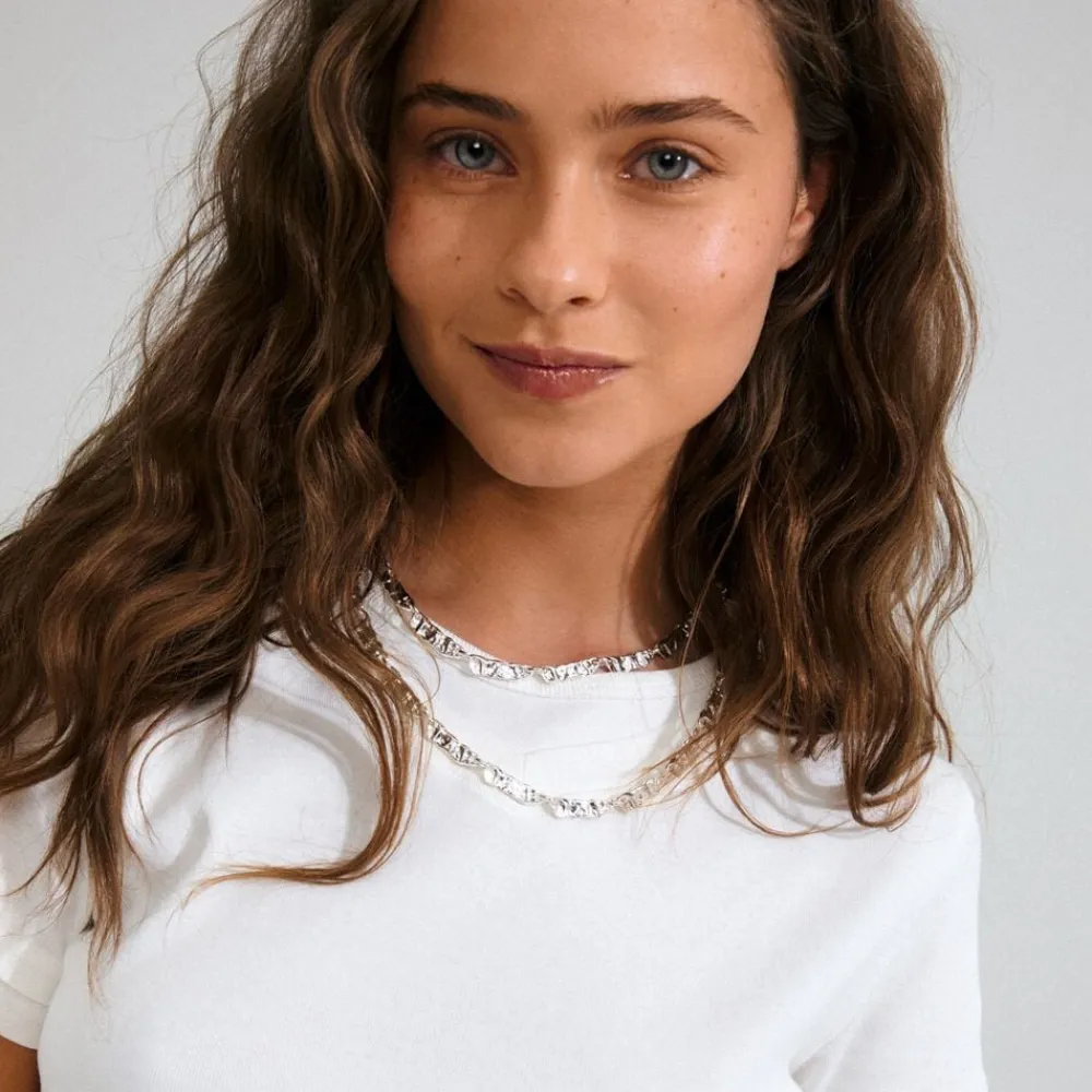 Be your own icon! Sølvbelagt multi chain fra Pilgrims INSTANT-kollektion, designet med flade, rektangulære led og en uregelmæssig struktur, der giver en rå handcrafted feel. Dit perfekte go-to, for et effortless chic outfit. Den 90 cm lange kæde giver et råt urbant look og kan styles som både chain belt eller layered halskæde. Brug den med lavtaljede cargopants og en chunky croped sweater for en city-chic style. Fremstillet af 99% genanvendt materiale – that’s fashion with a conscience and attitude.
