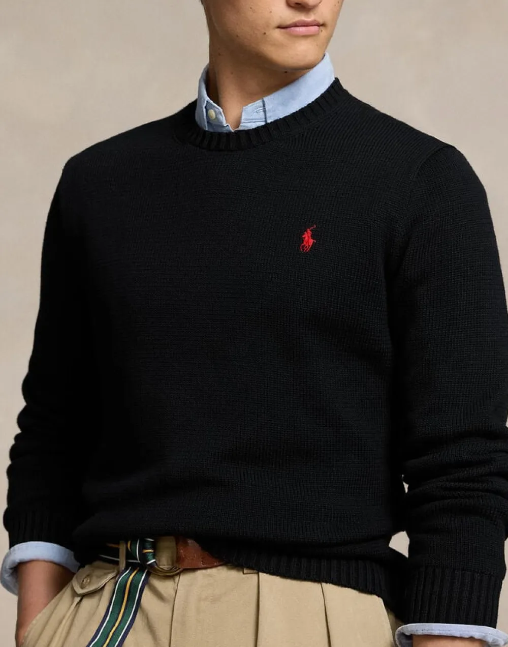 Strik fra Polo Ralph Lauren i den blødeste kvalitet af 100% bomuld. Strikken er enkel i modellen med en rund halsudskæring, lange ærmer, brede ribkanter samt en klassisk logodetalje syet på fronten.
