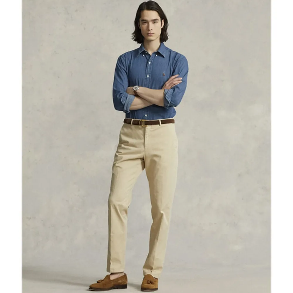 Skjorte fra Polo Ralph Lauren i en blød denimkvalitet af 100% bomuld. Skjorten er ‘Custom Fit’ i modellen med knaplukning på fronten, ‘button-down’-krave, lange ærmer med manchetter samt mærkets logo syet på brystet.