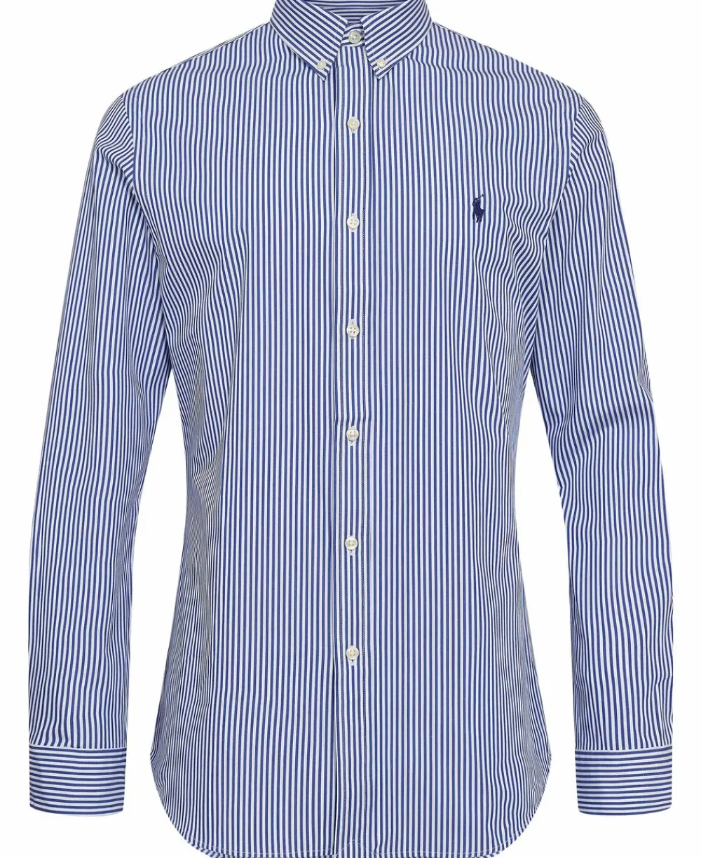 Skjorte fra Polo Ralph Lauren i en blød bomuldskvalitet med stretch og et stribet print. Skjorten er ‘Slim Fit’ i modellen med lange ærmer, knapper med perlemorslook, en ‘Button-down’-krave samt en diskret logodetalje på brystet. En skøn skjorte i den lækreste kvalitet.