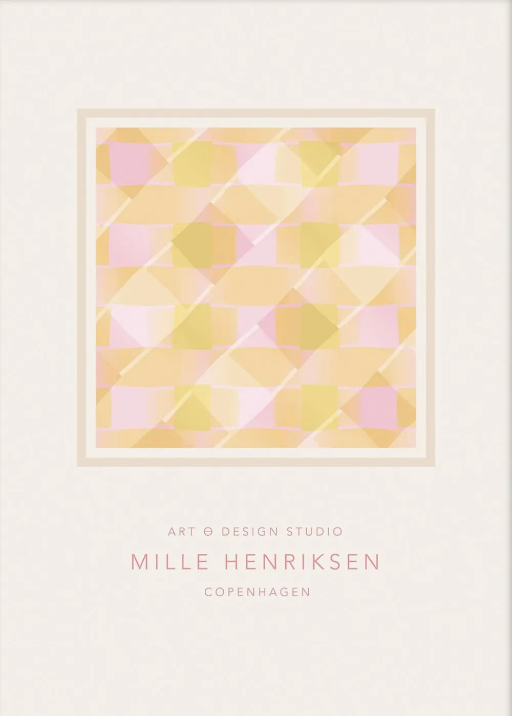 Københavns baserede grafiske designer og kunstner. Jeg nyder at eksperimentere med former, farver og teksturer, og min udtryksmåde ligger i de forskellige områder mellem det enkle og det flerlagede.Derfor finder du en stor variation i mit arbejde, der omfatter trykte samlinger, malerier og unikke genstande.”” – Mille Henriksen *Bemærk at rammer sælges separat.
