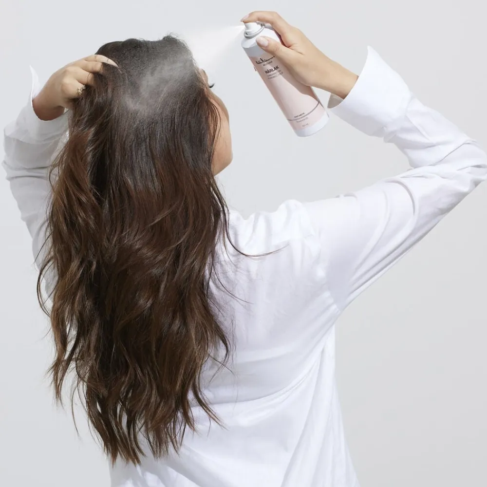HÅRLAK giver din frisure et langvarigt, men fleksibelt hold og efterlader ikke håret stift. Det vil sige, at håret nemt kommer tilbage til den oprindelige frisure efter et blæsevejr. HÅRLAK holder også både frisuren og små hår på plads, selv i fugtigt vejr.