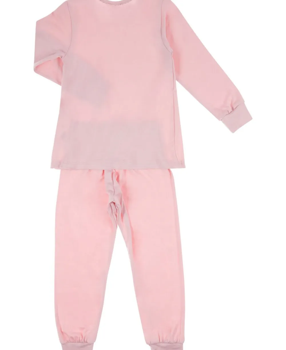 Pyjamas sæt. Bluse i A-facon og med lange ærmer. Piquette stikning i halsen som sød detalje. Bukser med blød logo elastik i taljen. Hele sættet er i en dejlig blød og elastisk viskosekvalitet med bambus og som der er behagelig at have på. Ensfarvet.