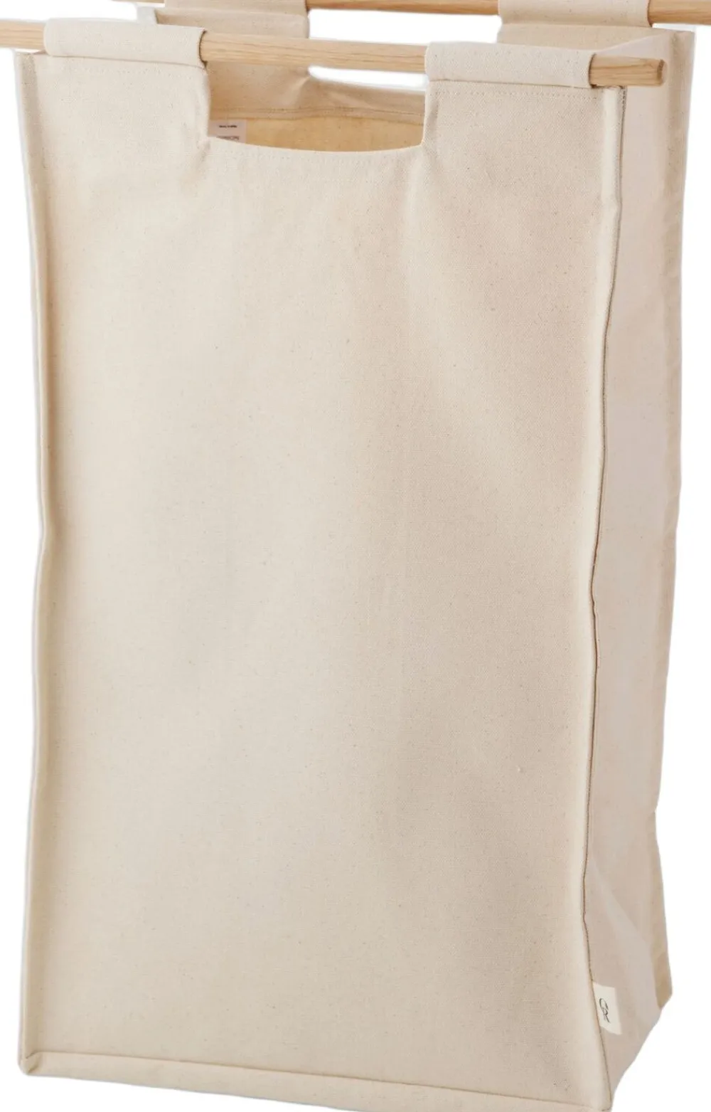 Tekstilposen fås i tre forskellige varianter, så du kan tilpasse opbevaringsløsningen til din personlige stil: en klassisk natur, en natur med kastanjerøde striber, eller en natur med koboltblå striber. Uanset hvilken du vælger, giver denne løsning dig mulighed for at tilføje et stilfuldt element til din indretning. Posens indvendige plastlag sikrer, at fugt fra eksempelvis vådt vasketøj holdes inde og med GOTS-certificeringen af tekstilposen kan du være sikker på, at materialet er fremstillet under bæredygtige og socialt ansvarlige forhold.