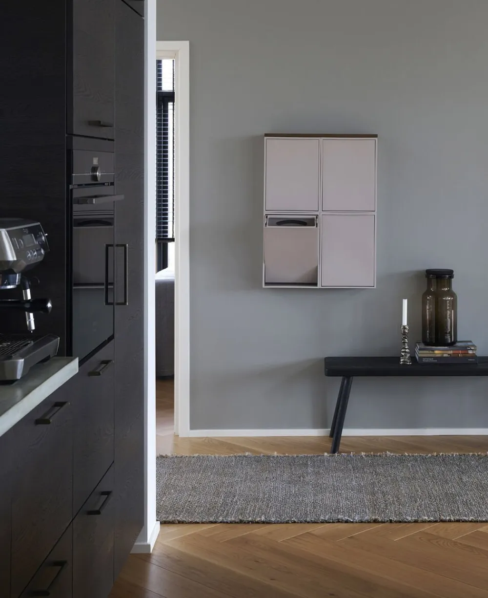 Stilrent, nemt og genanvendtReCollector er et innovativt, brugervenligt og dansk designet system til affaldssortering og opbevaring. Det stringente design gemmer på en lang række smarte funktioner, der gør din hverdag nemmere og mere overskuelig, når du skal sortere dit affald eller har brug for opbevaring. Selve boksene kan ophænges og kombineres alt efter, hvad der passer til dit hjem og din personlige stil. Den patenterede løsning er lavet i genanvendt plast, som også kan genanvendes. Derfor kan mindre variationer og små prikker forekomme i overfladen. Løsningen er praktisk, når du ikke har plads under vasken eller ønsker bedre tilgængelighed. Boksene har en åbne- og lukkemekanisme, der er nem at betjene, håndtag, så man kan tage hele skuffen ud, mulighed for at sætte affaldsposer i spænd og er desuden lugtfri. Kom godt i gang med affaldssortering →Materiale og målMateriale: Genanvendt PP plast og mineralerBredde: 30 cmHøjde: 40 cmDybde: 15 cmVægt: 2 kgVolume: 12 literFarverBlack Raven: HEX 454546Brilliant White: HEX EFF0F1Silver Cloud Grey: HEX C5BDB5Deep Dive Blue: HEX 385265Fungi Brown: HEX 8D8177Iron Blue: HEX 94A09BOak Green: HEX 8C8B7BAsh Rose: HEX B28282VedligeholdelseSorteringsboksen rengøres med en blød, fugtig klud eller svamp. Tilsæt evt. et mildt opvaskemiddel eller sæbe. Eftertørres med en ren, tør klud. MonteringSe vores monteringsvideo her eller hent vejledning. Skruer medfølger ikke. Vi har erfaret, at vores kunder som oftest ønsker at bruge deres egne skruer og derfor har vi valgt ikke medsende skruer.