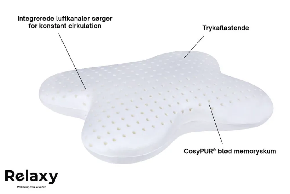 Relaxy STAR Puden tager din soveoplevelse til et nyt niveau. Den stjerneformede pude er designet til at yde ergonomisk støtte og ultimativ afslapning til nakke og skuldermuskler. Puden er ideel til enhver sovestil. Find dig selv til rette, uanset om du sover på maven, siden eller ryggen, og opdag hvordan puden gør underværker for dig og din søvn.