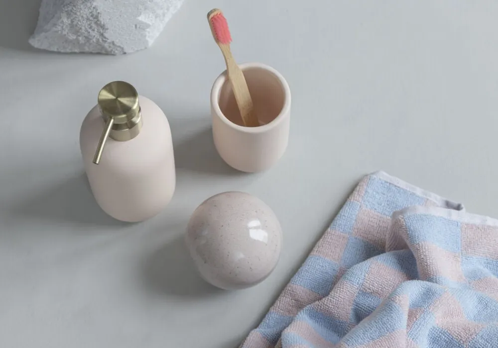 Mix og match RETRO håndklæderne med farvestrålende badtilbehør fra Mette Ditmer.