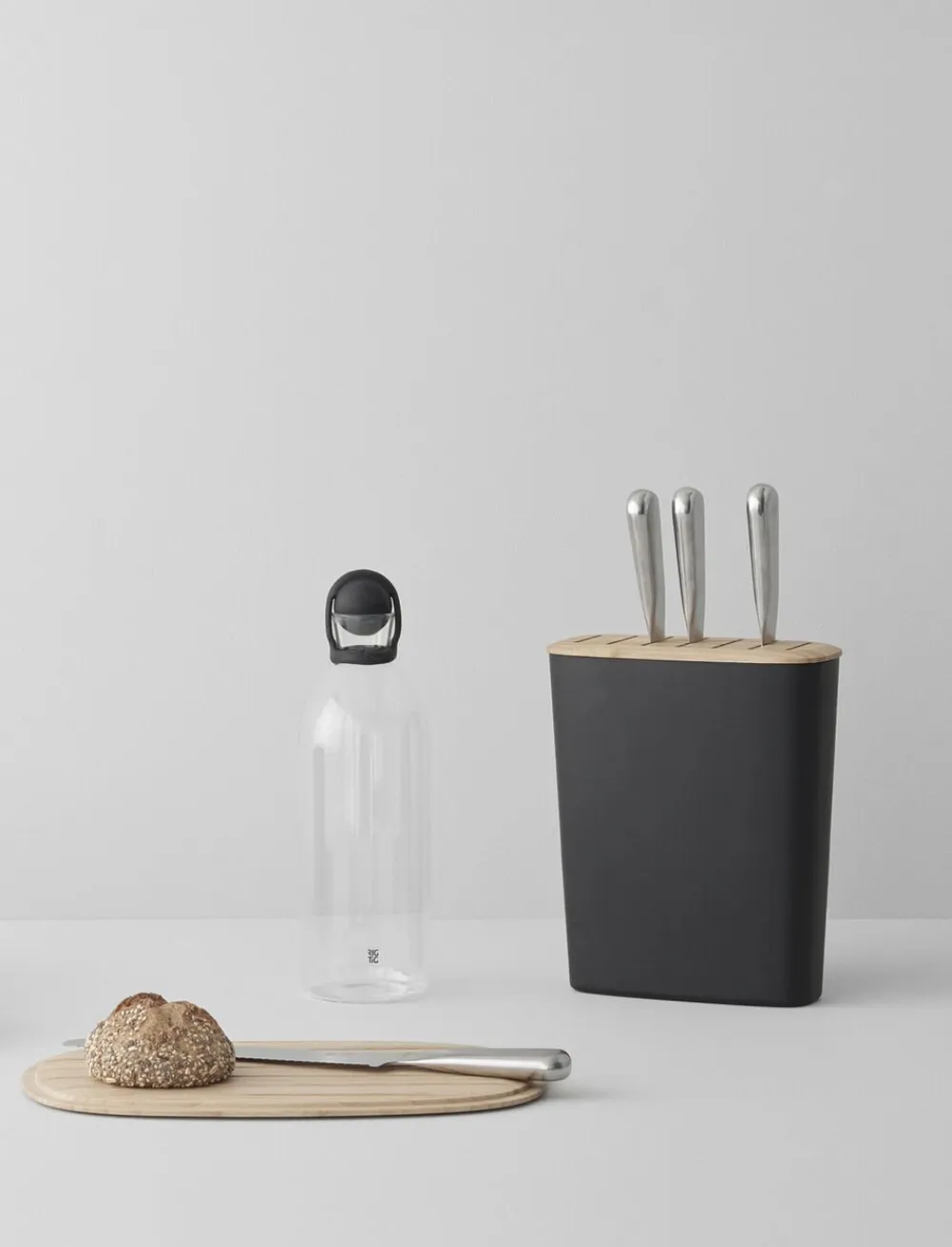 Den populære COOL-IT er en stilren og funktionel glaskaraffel designet af canadiske Francis Cayouette. Med COOL-IT karaflen kan du altid servere en indbydende og velsmagende forfriskning på flot vis i den klare glaskaraffel. Pift eventuelt almindelig vand op med isterninger og agurkestænger, ingefær, lime eller mynte, fyld karaflen med frisk æblesaft fra æblerne i haven eller hjemmelavet lemonade. COOL-IT er den perfekte kombination af design og funktionalitet Karaflen passer perfekt på hylden i køleskabsdøren og den smarte åbne-lukke-funktion kan håndteres med et enkelt tryk med tommelfingeren: Vip blot kuglen over kanten, og skænk op, og skub kuglen på plads igen for at lukke karaflen til, så hverken bier eller andre uønskede insekter finder vej ned i karaflen, når I nyder en kold forfriskning på terrassen.